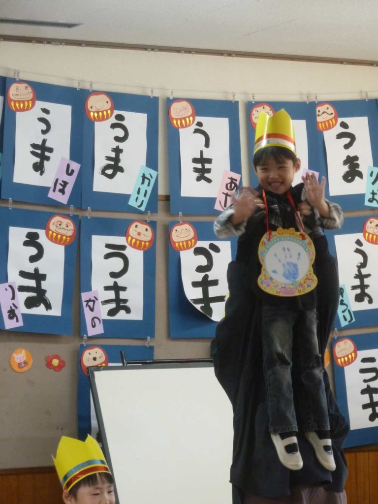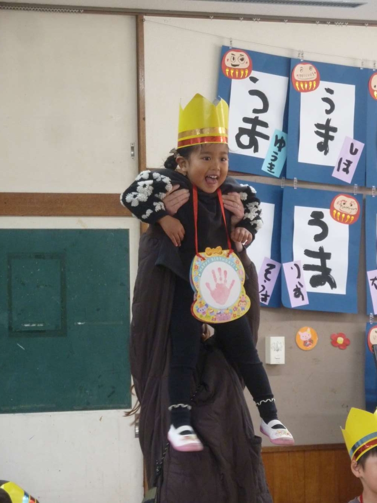 12月生まれのお友達は4人です。みんなに「おめでとう!」と言われてとてもうれしそうです。何歳になったかな??みんな大きくなりました。好きなものや大きくなったら何になりたいか?の質問に恥ずかしそうに答えてくれました。お誕生日おめでとう。