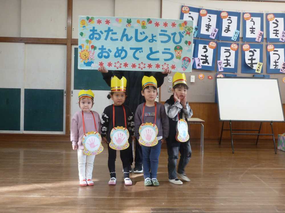 1月23日(金)は1月生まれのお友達のお誕生会でした。寒い季節に元気に生まれてきた4人のお友達のお祝いをみんなでしました。