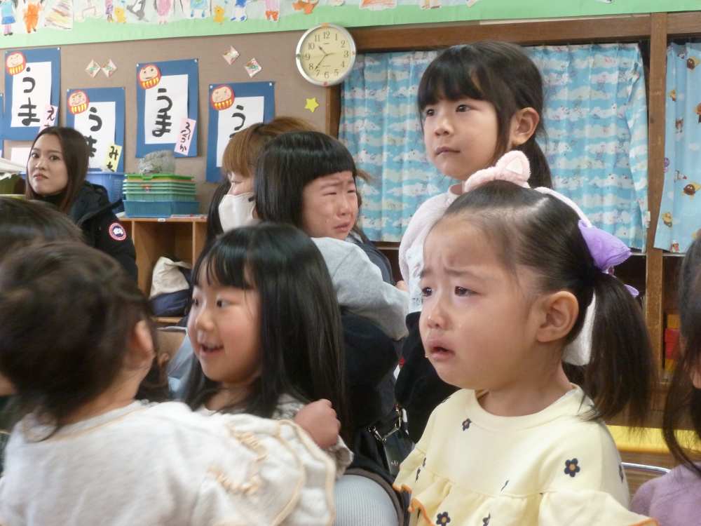 泣き顔の子供もいますね。