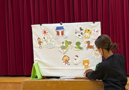 講師はボランティアで来てくださる、小高坂民生委員児童委員・主任児童委員の板垣眞波さん。先生の自己紹介と、「おはようございます。よろしくおねがいします」のすみれ組のご挨拶から始まりました。