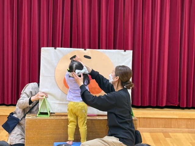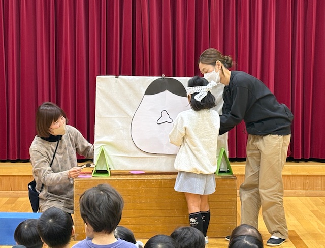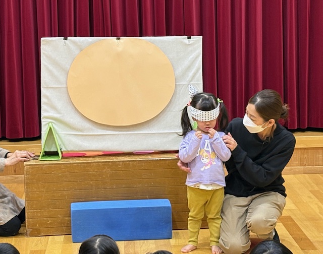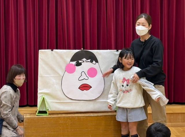 次は、誕生日のお友達に【福笑い】をしてもらいました。