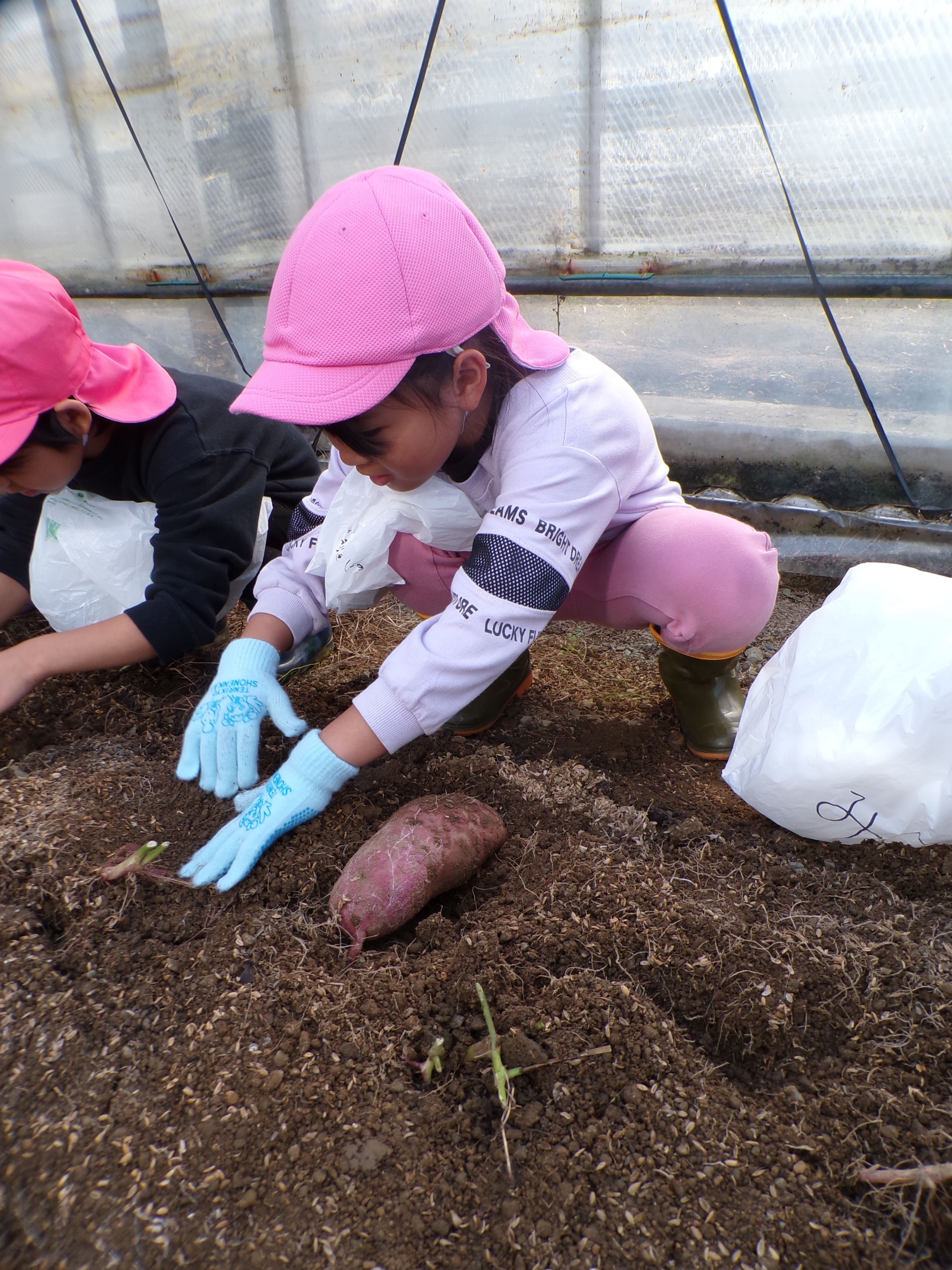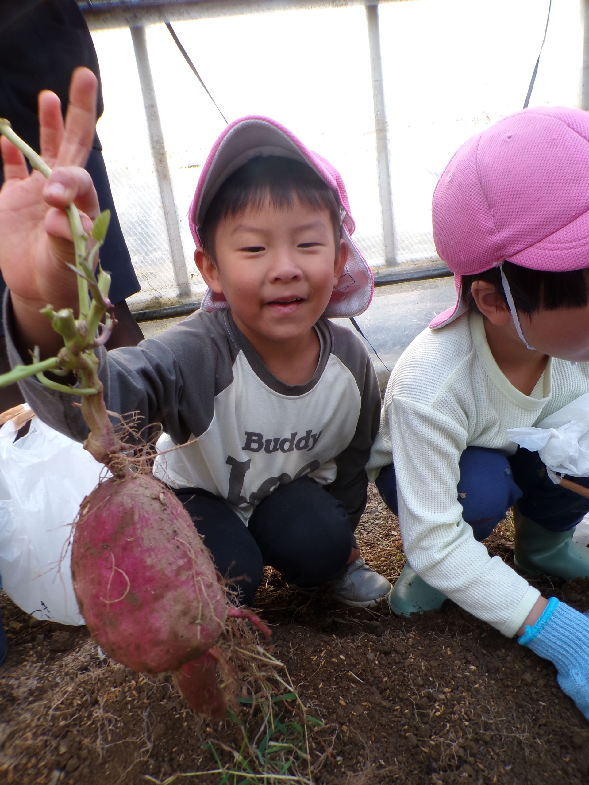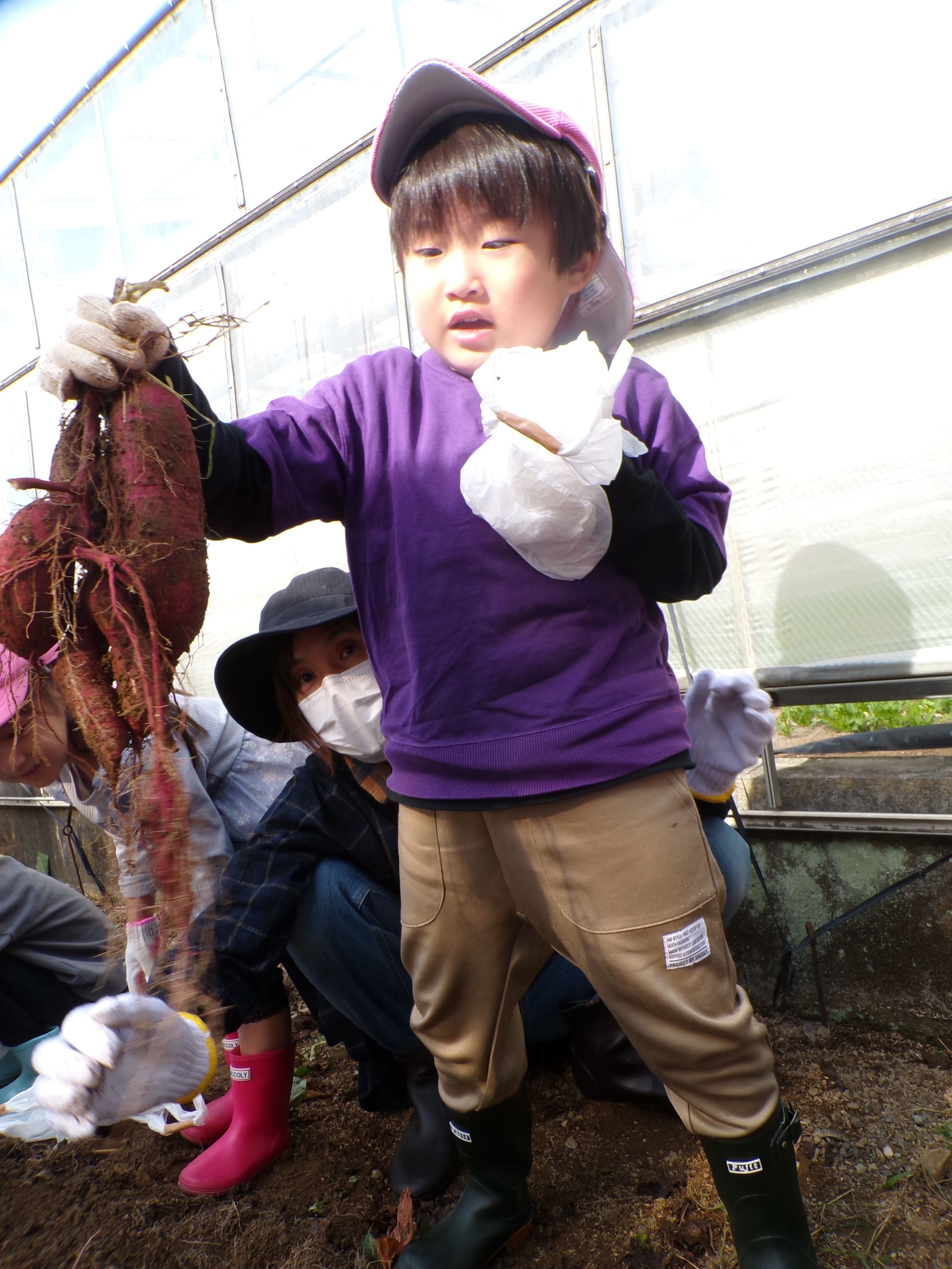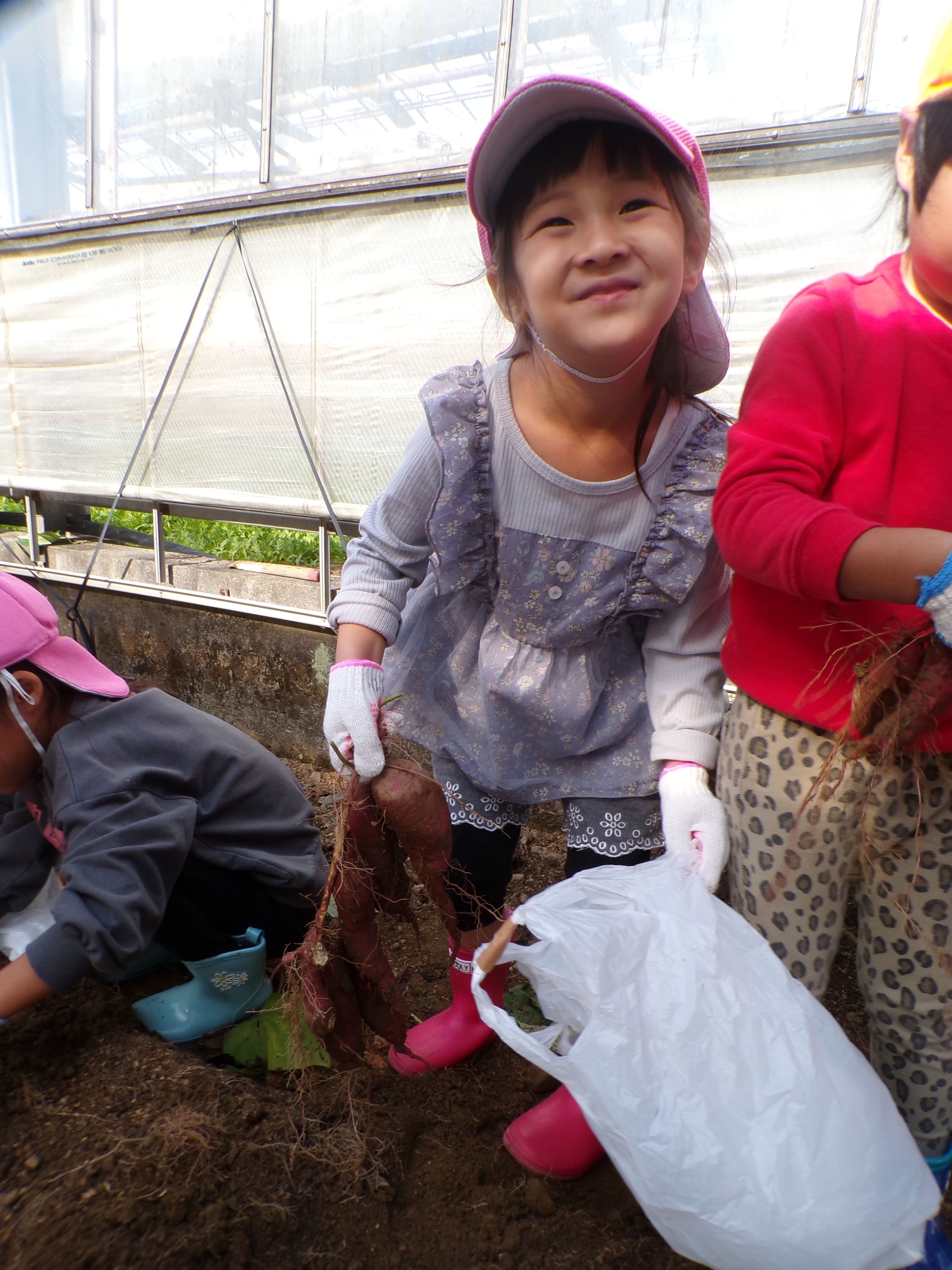 両手で土をかきわけ、一生懸命お芋を掘りました🍠