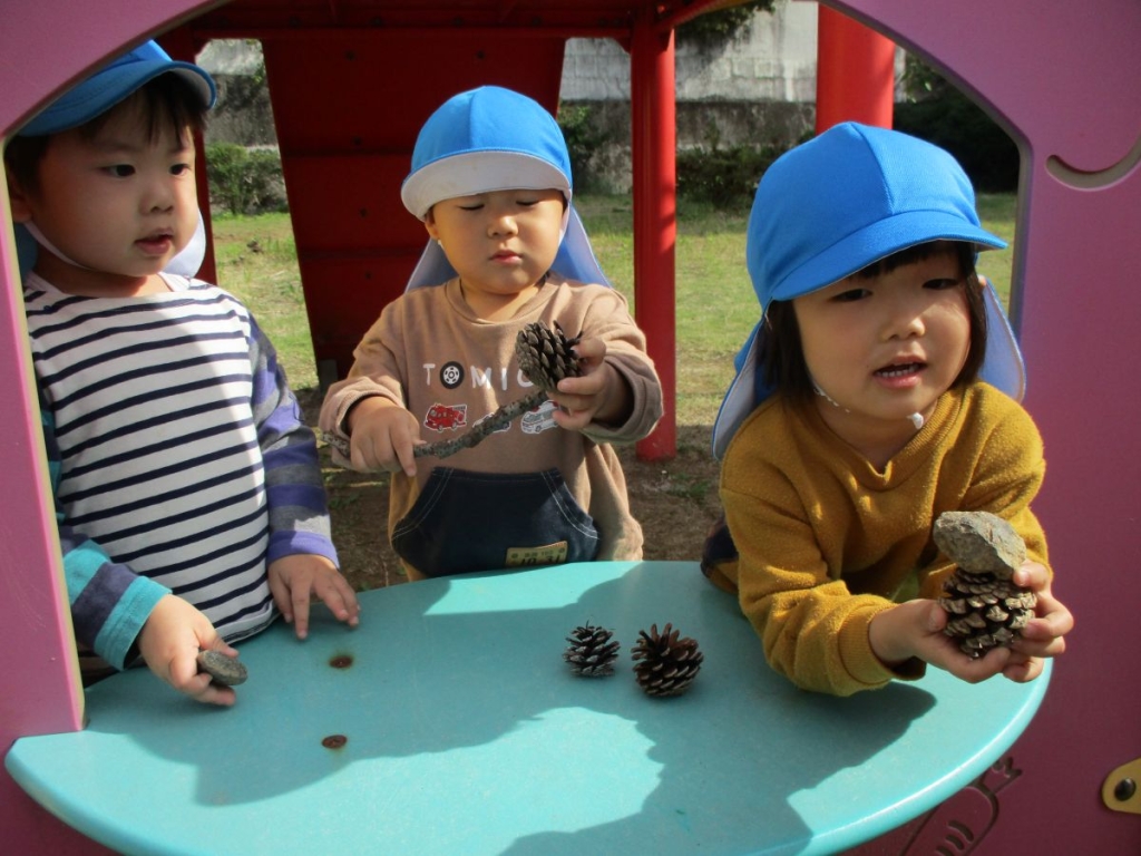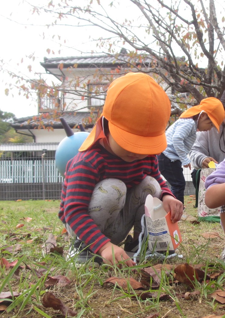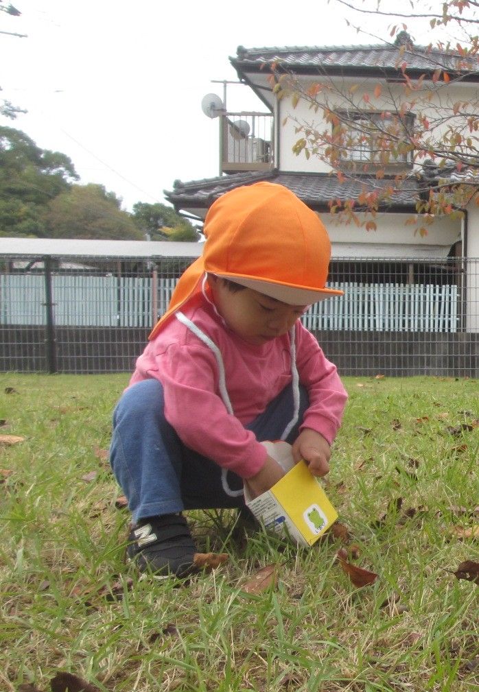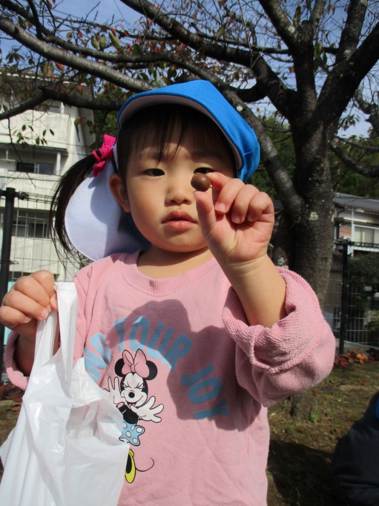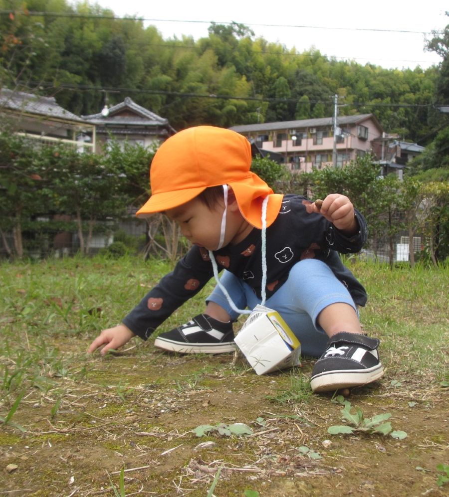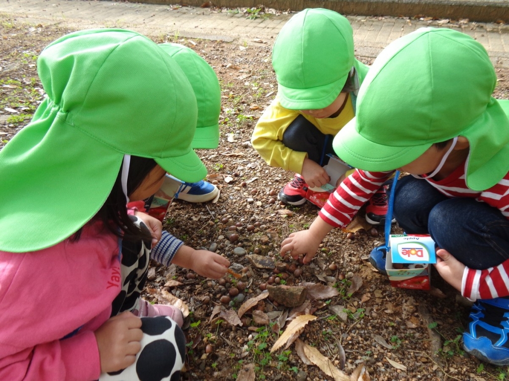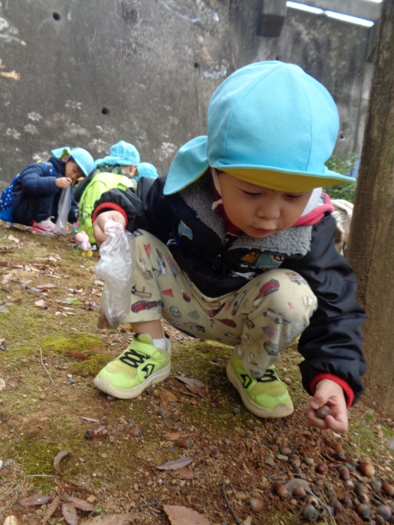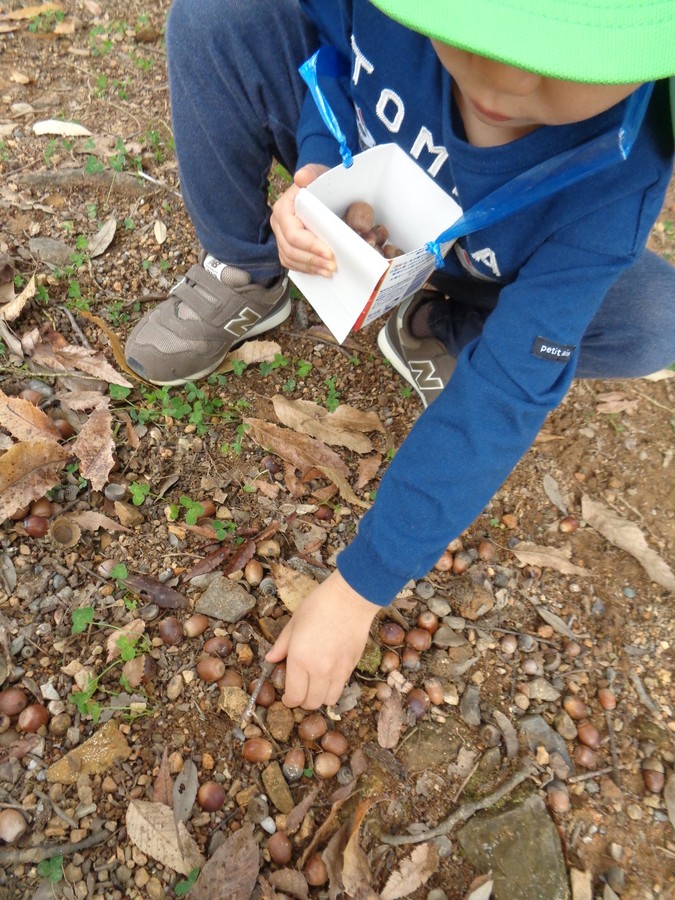 りす(1才児)組はどんぐり拾い