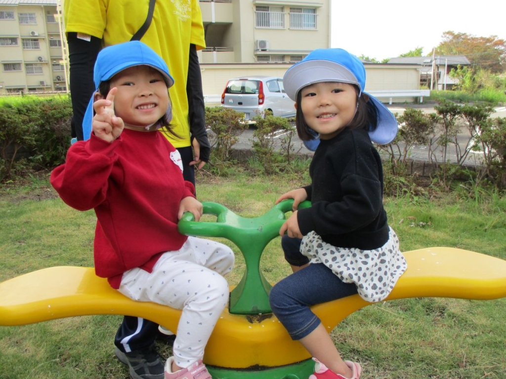 うさぎ(2歳児)組はどんぐり拾いの後、近くの公園に遊びに行きました!
