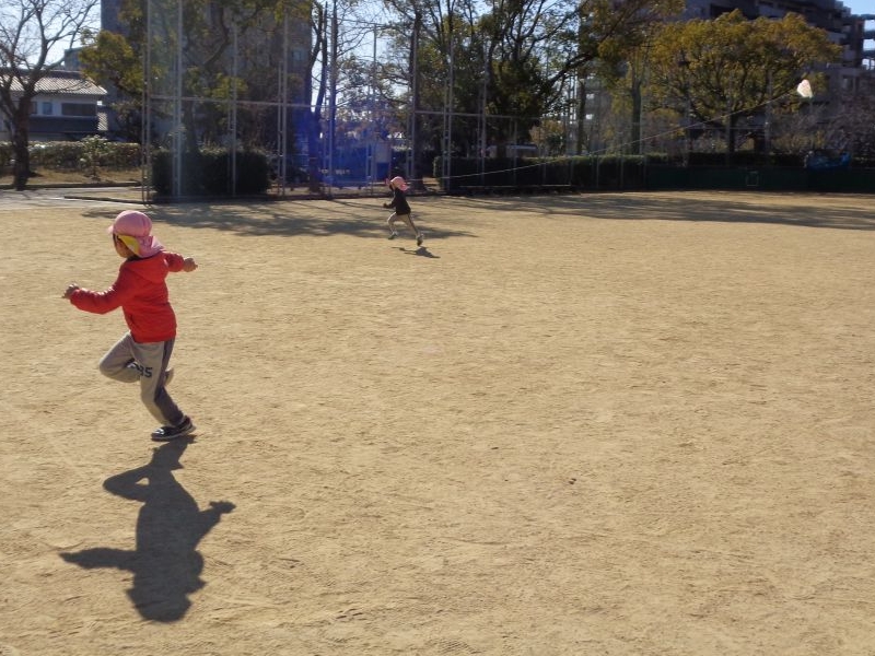 さくら(年中)・すみれ(年長)組の子ども達はもっと高く飛ばせるようにと近所の公園に行きました。