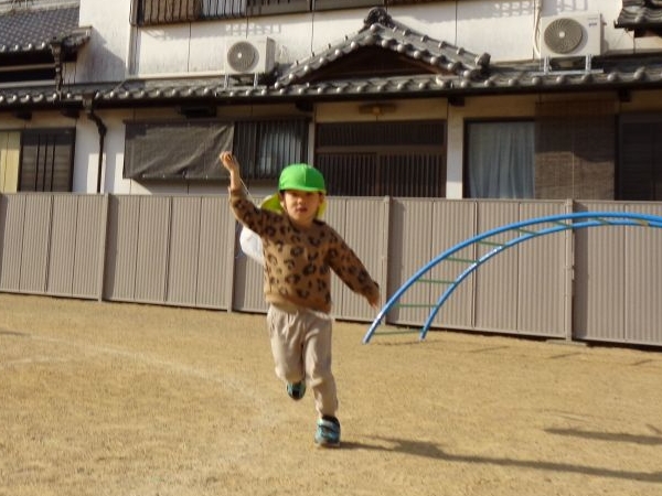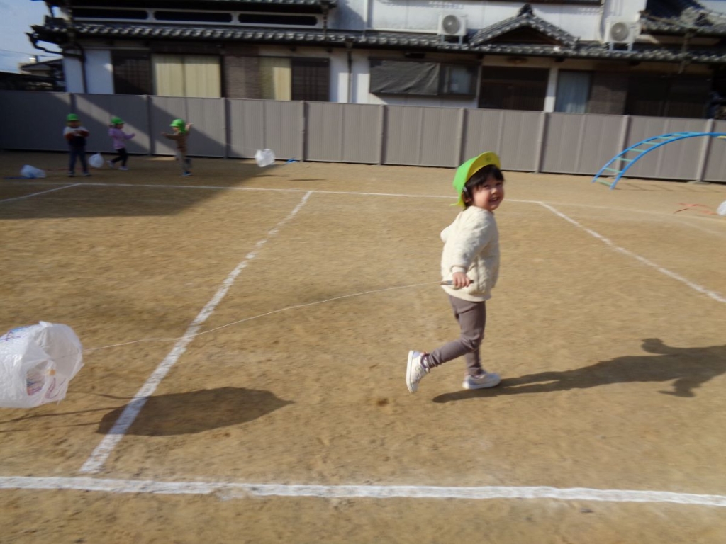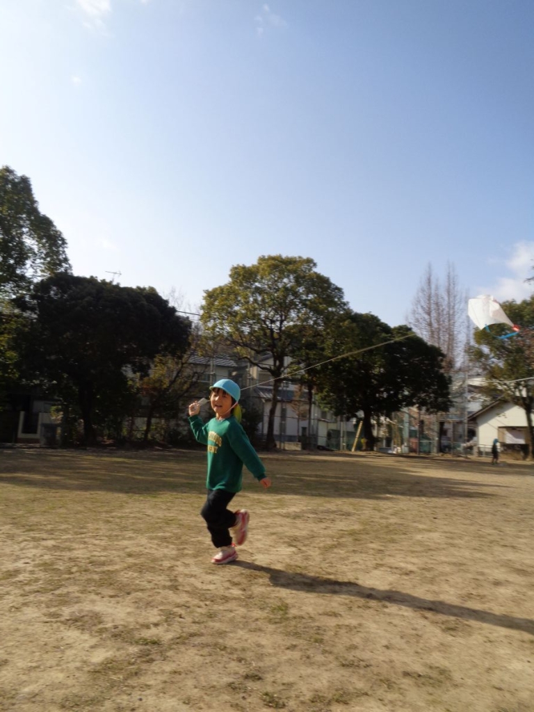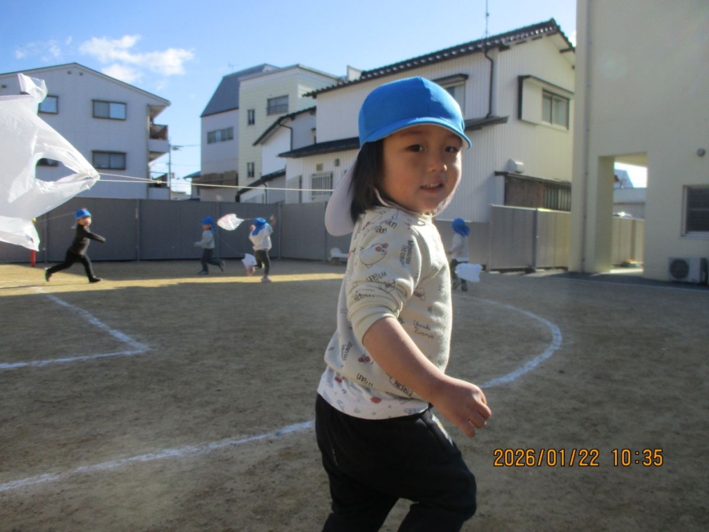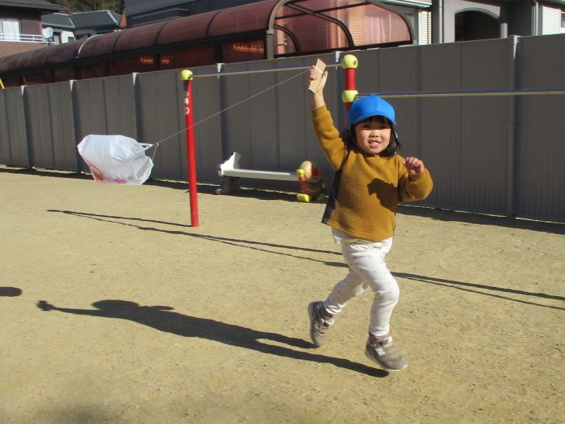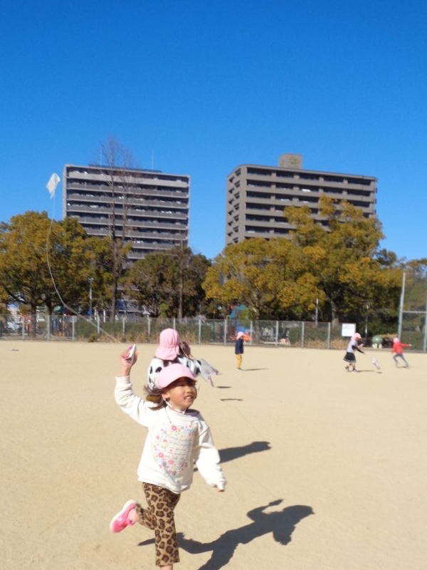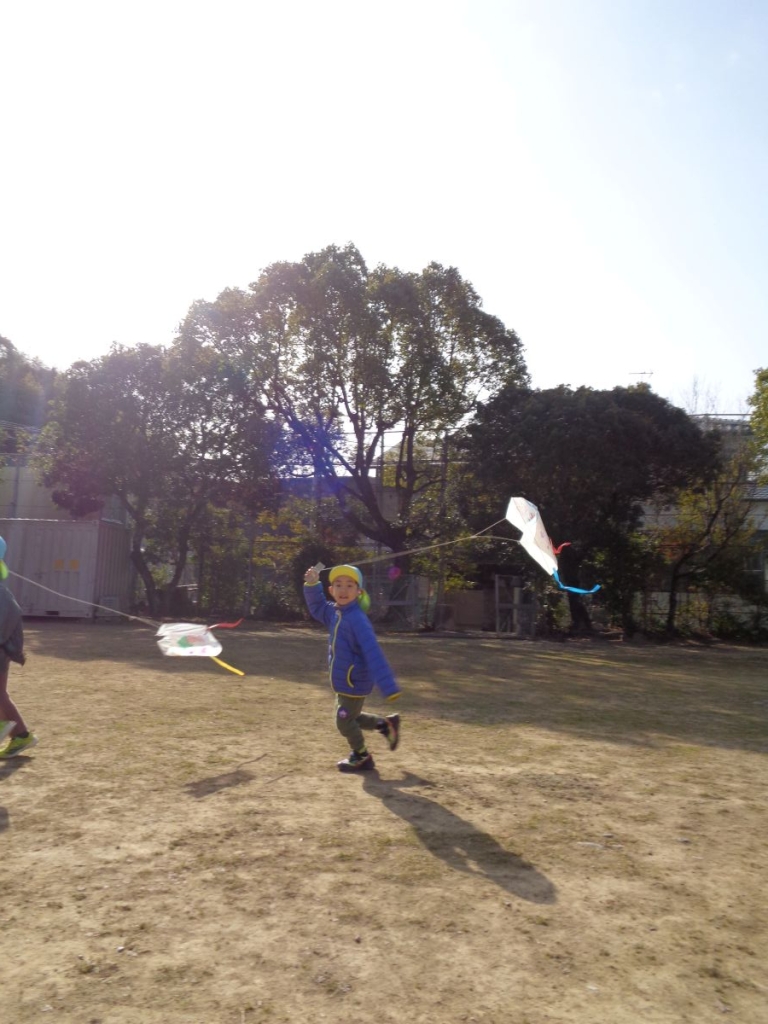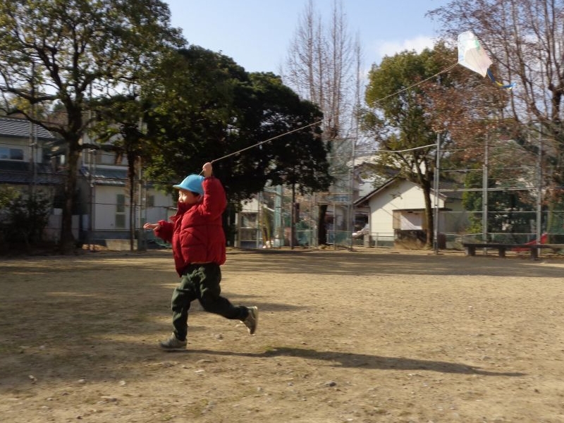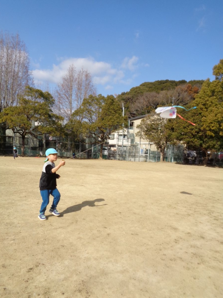 1月と言えばお正月あそびですね。園庭ではたこあげを楽しみました♪