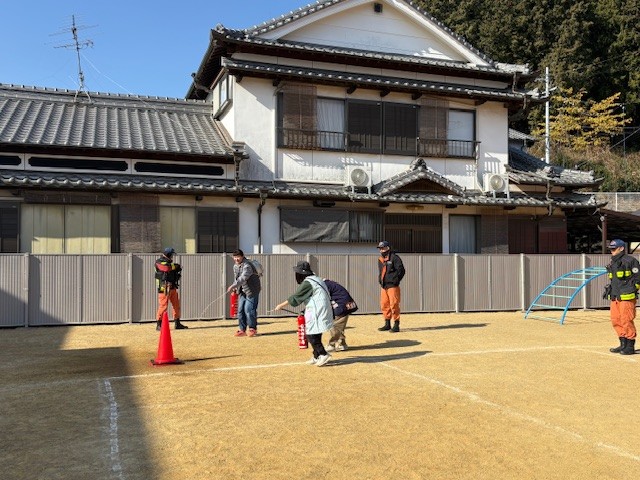 年に一度、北消防署から消防防火訓練の指導に来てくれます。