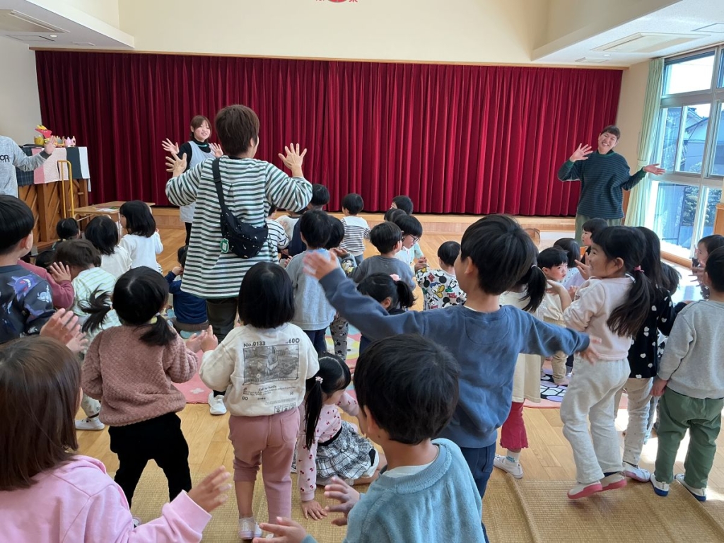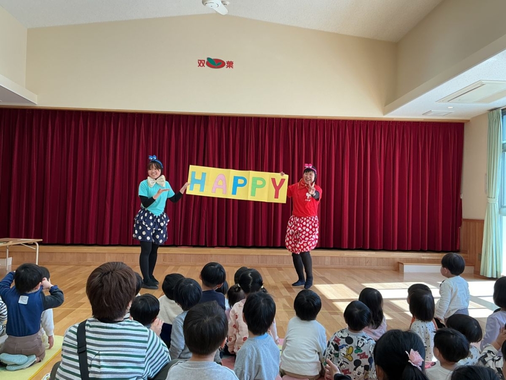 最後に皆で♪ハッピーハッピー、ハッピ ハッピー♪と踊りました。ノリノリの曲で皆の顔がハッピーでした!