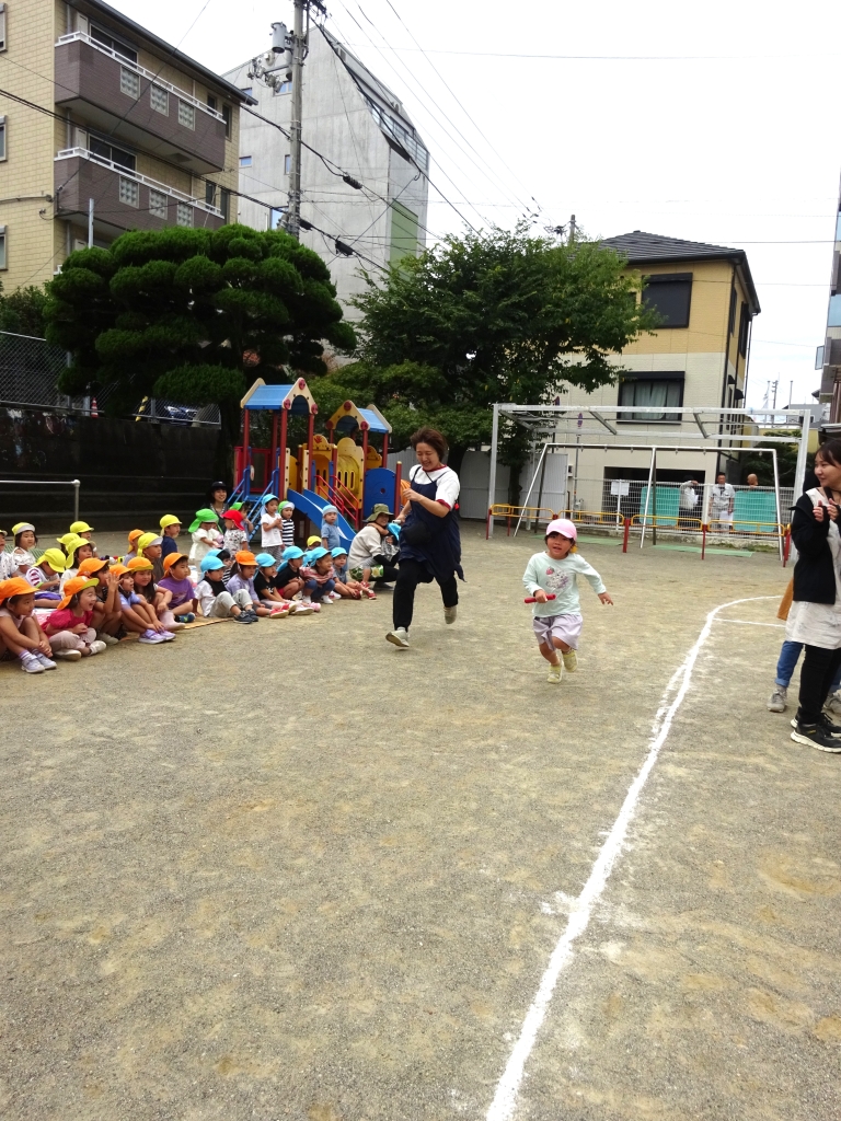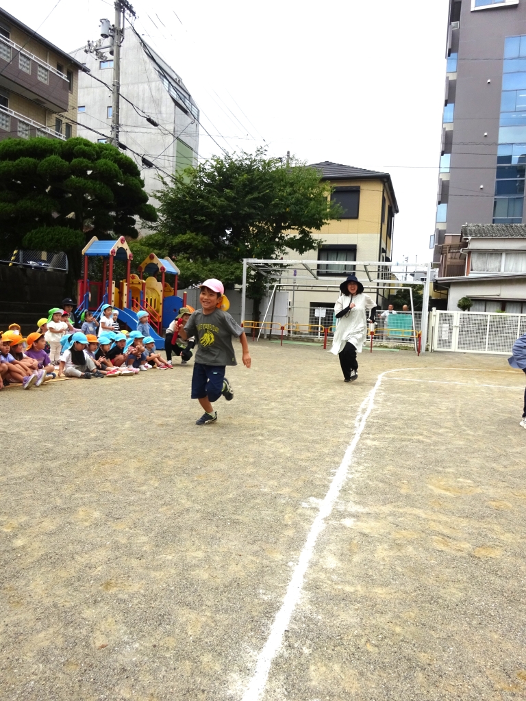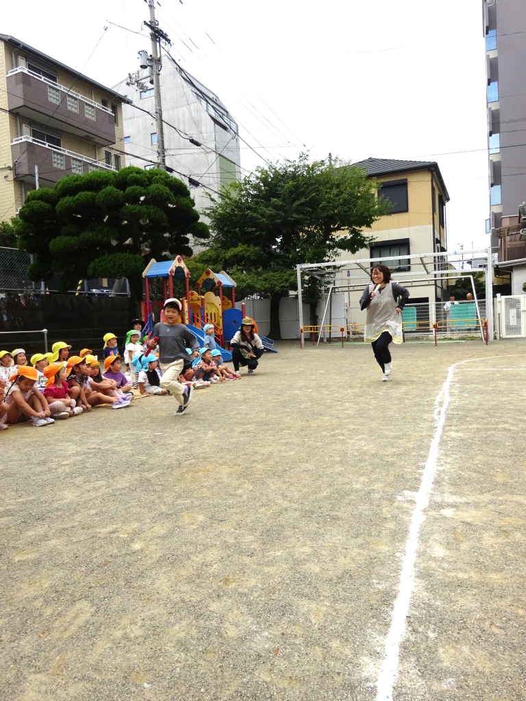 最後は、らいおん組VS保育士でリレー対決。らいおん組の勝利です。「イエーイ!」と、大盛り上がりでした☆