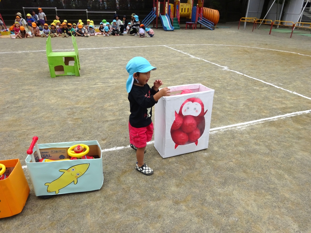 ぱんだ組の競技の「おつかいにLet’s go!」では、ぱんだ組ときりん組で仲良くおつかいをしました。