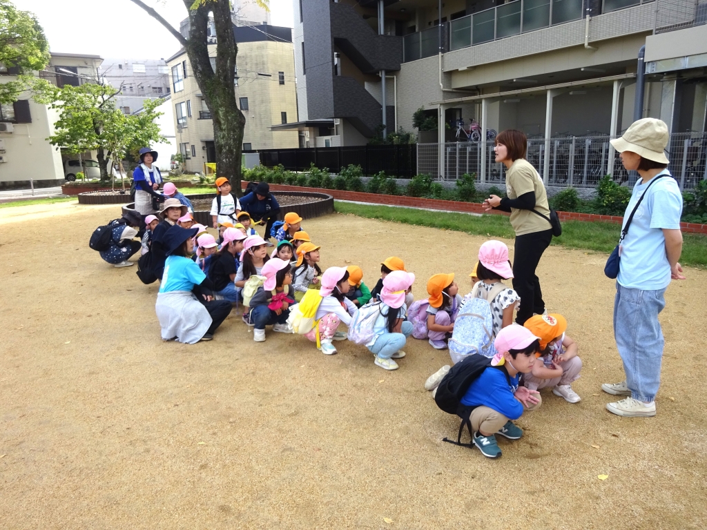 公園に着いてからは、大事なお約束です。先生のお話をしっかり聞いて公園で遊びました♪