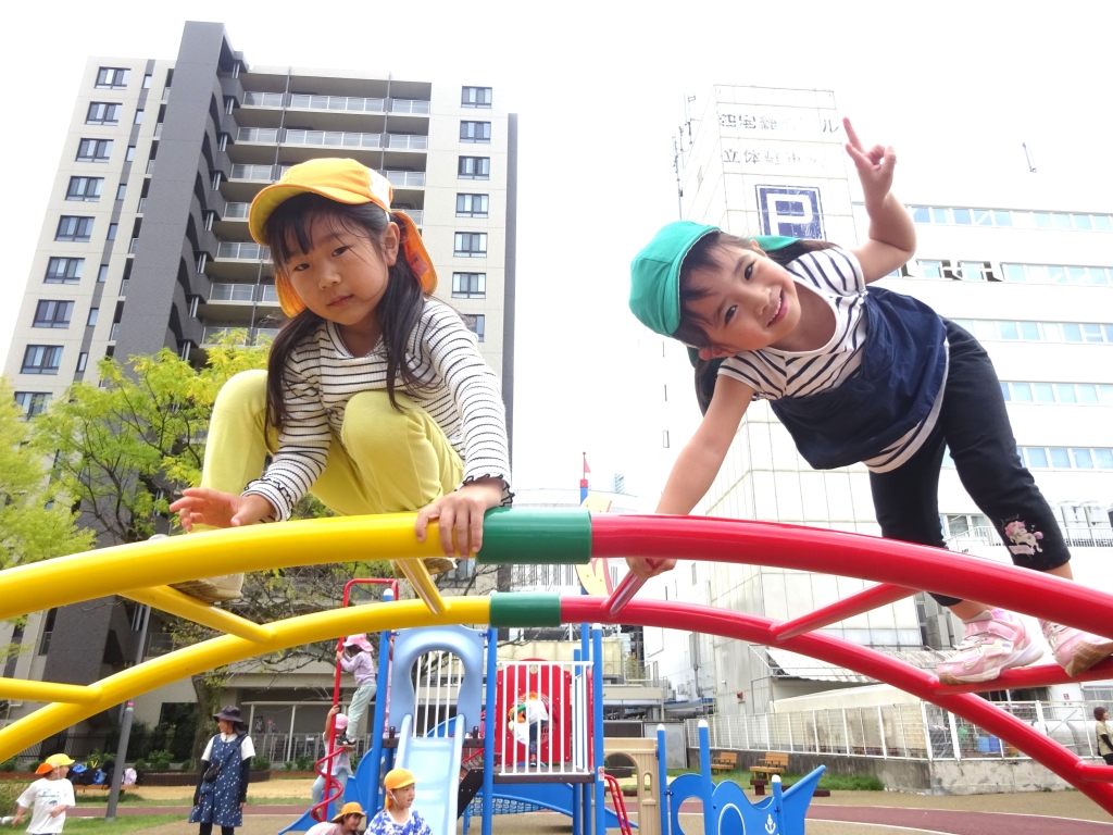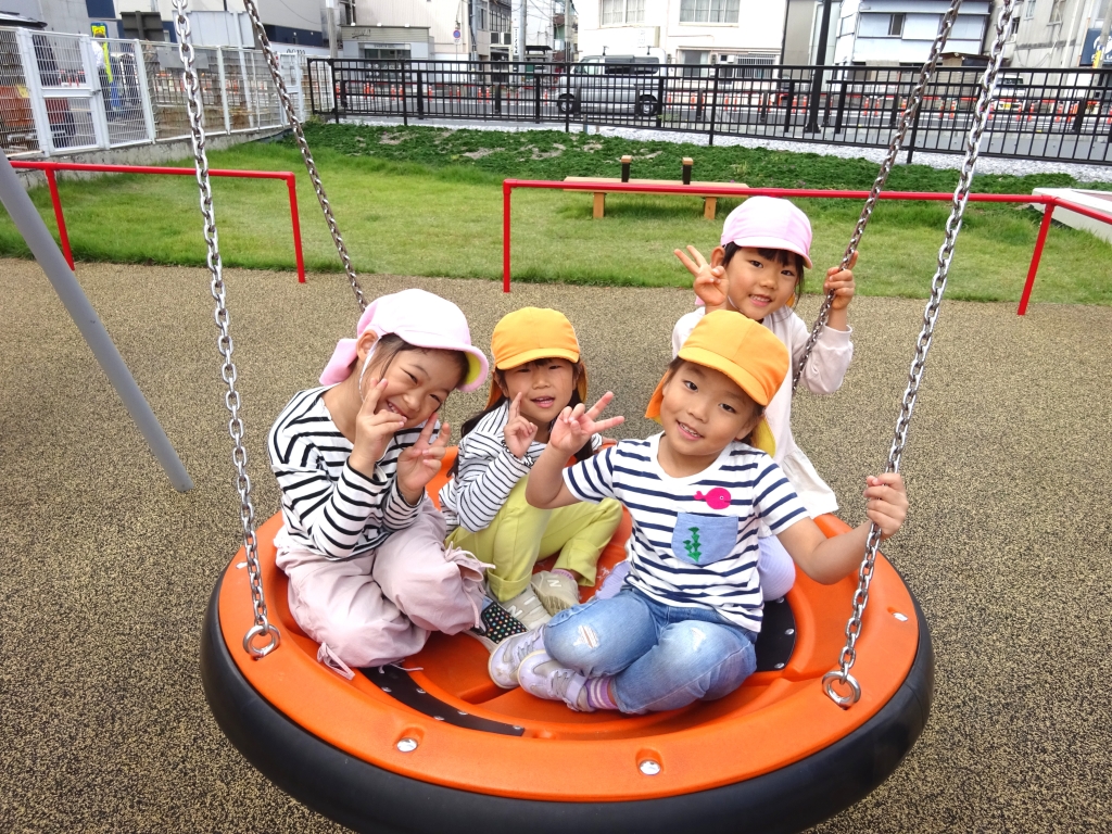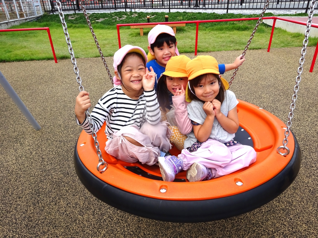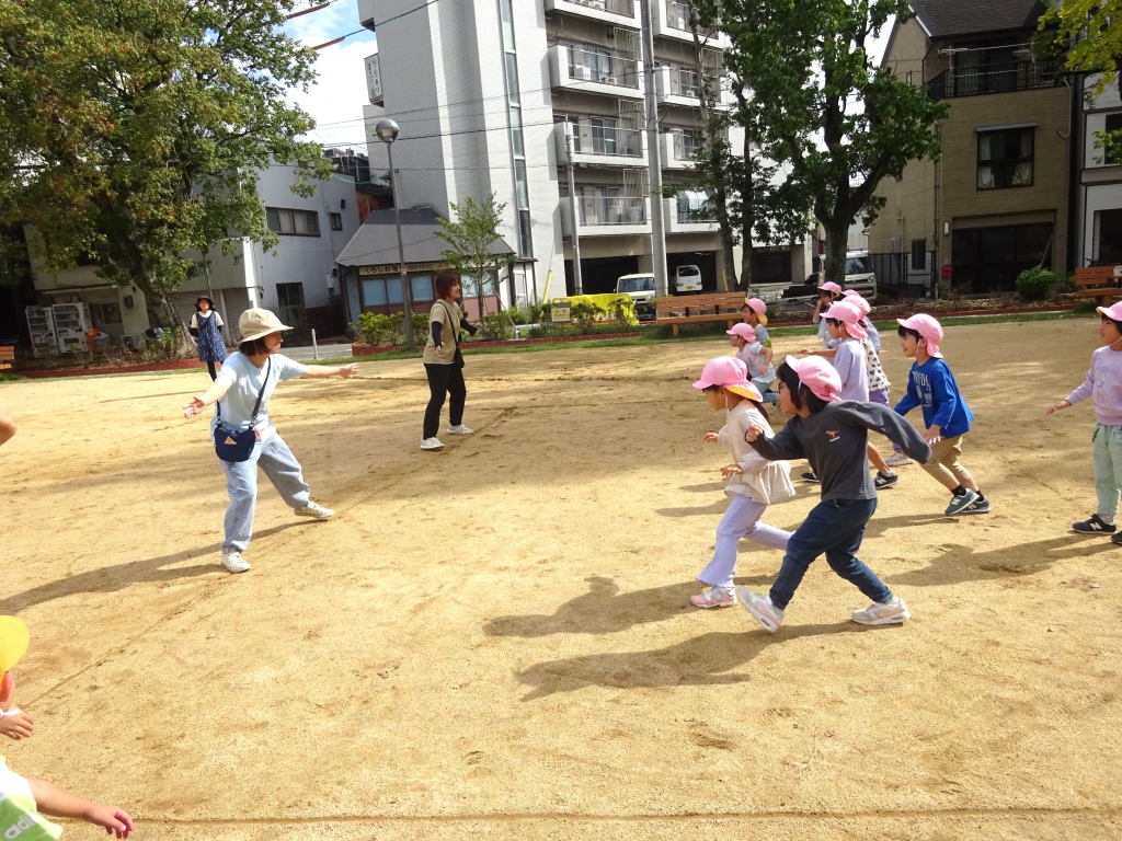 遊具だけではなく、先生につかまらないように向こうまでいけるかな?という、ゲームもして大盛り上がりでした。先生につかまらないようにみんな必死です☆