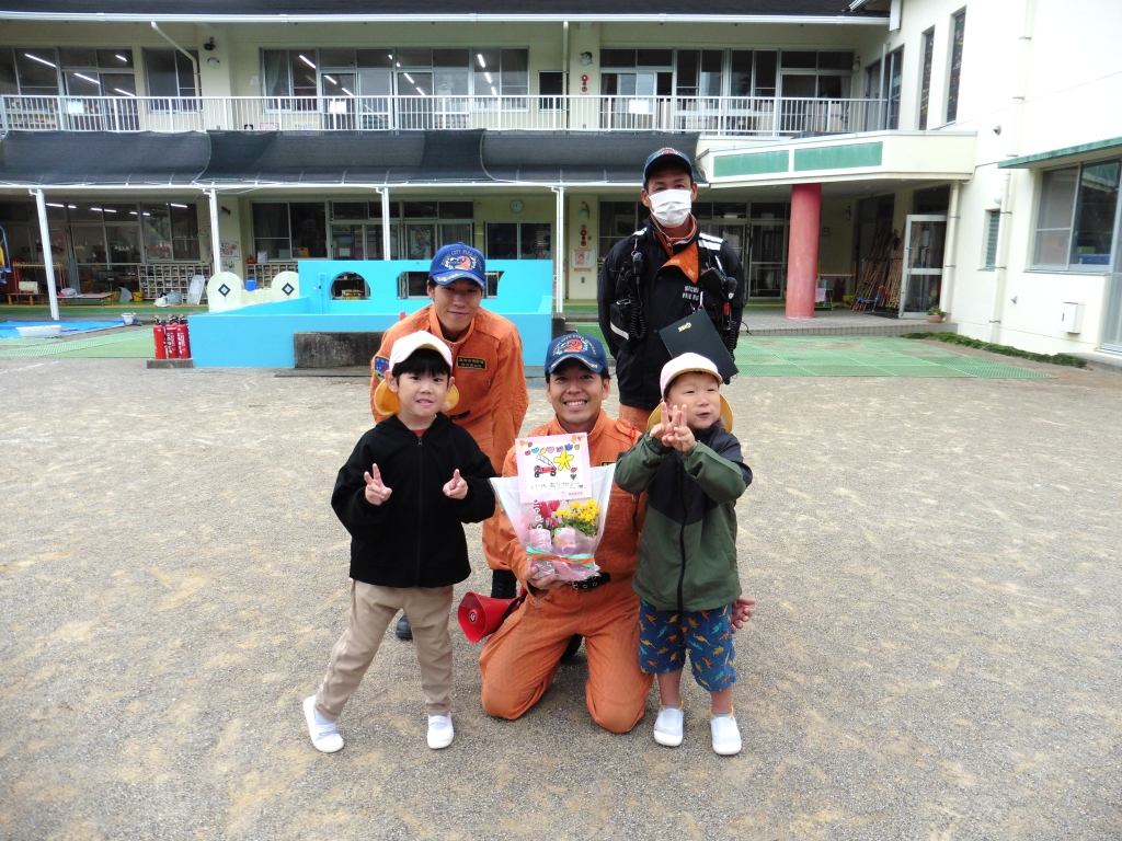 らいおん組が最後に元気よく「ありがとうございました」のお礼を言いました。かっこいい消防車を見せてもらってうれしかったね♡