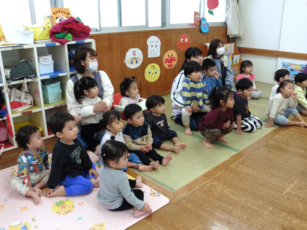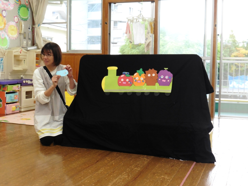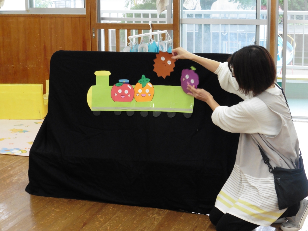 「どんぐりころころ」のうたをうたったり「なかよしきしゃぽっぽ」のお話を聞いて楽しく過ごしました♪