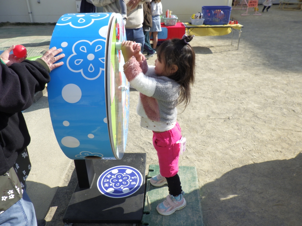 マジックショーの後は、ゲームや販売のスタートです。おかしつりやガラポン、わなげ等子どもたちが楽しめる遊びが盛りだくさんです。「おかしつれるかなー☆」「ガラポンのいっとう当たるかな~♪」等と楽しんでいた子どもたちです♡