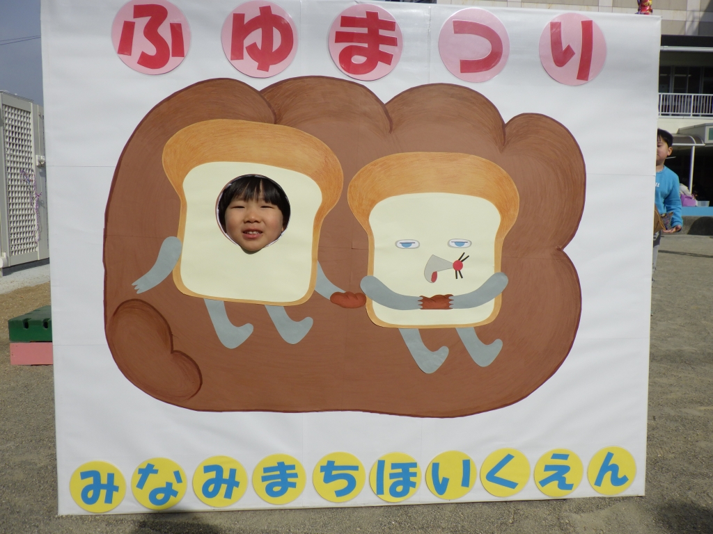 パンどろぼうの顔パネルで「ハイ・チーズ♡」