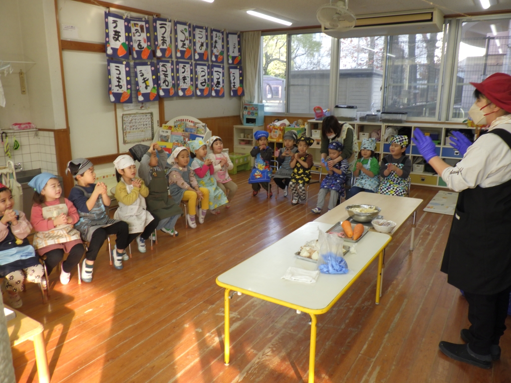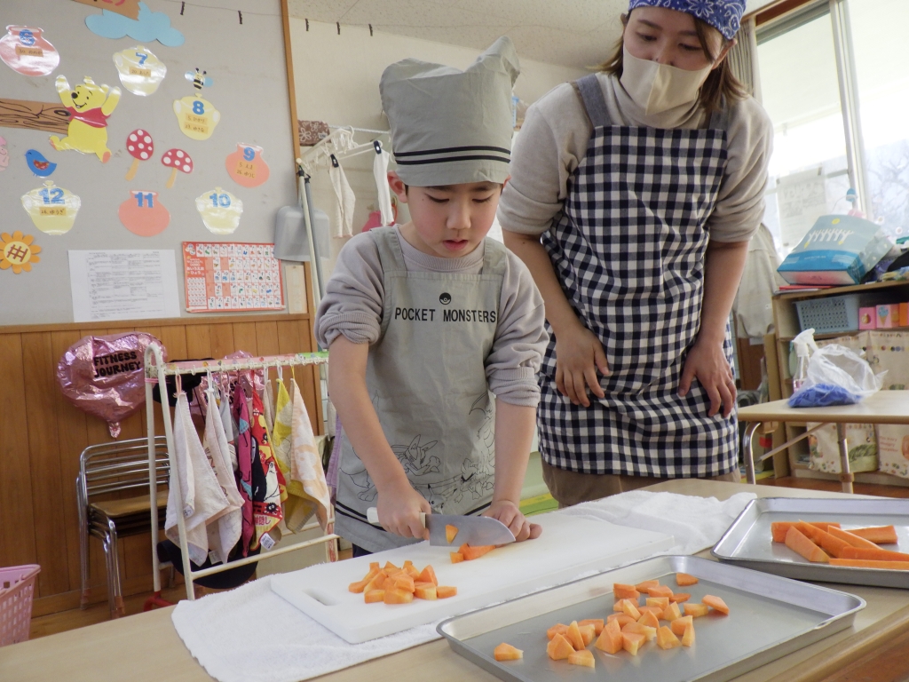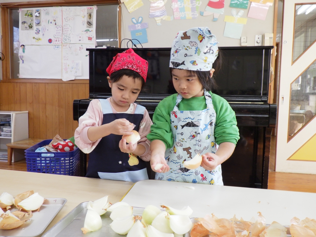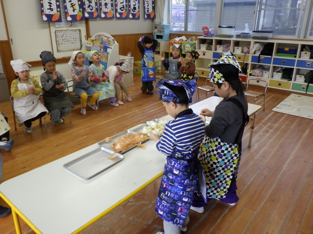 カレー作りしたよ🍛 2026.02.03 1/20にきりん組、らいおん組でカレー作りをしました。エプロンと三角巾をつけてワクワクの様子の子ども達☆きりん組は、玉ねぎの皮むきです。給食の先生の話をしっかり聞いて皮むきのスタートです。とっても真剣な様子の子ども達でした。 らいおん組は、包丁を使っての野菜切りです。 グツグツ煮込んだ後は、カレーの出来上がり。 みんなで作ったカレーおいしかったね♡お家でもお手伝いしてあげてね♪ 前の記事 次の記事 最新の投稿 冬まつり♪ ⛄雪あそび⛄ カレー作りしたよ🍛 1月誕生会&ししまい 絵本読み聞かせ カテゴリ 園からのお知らせ アーカイブ 2026年2月 2026年1月 2025年12月 2025年11月 2025年10月 2025年9月 2025年8月 2025年7月 2025年6月 2025年5月 2025年4月 2025年3月 2025年2月 2025年1月 2024年12月 2024年11月 2024年10月 2024年9月 2024年6月