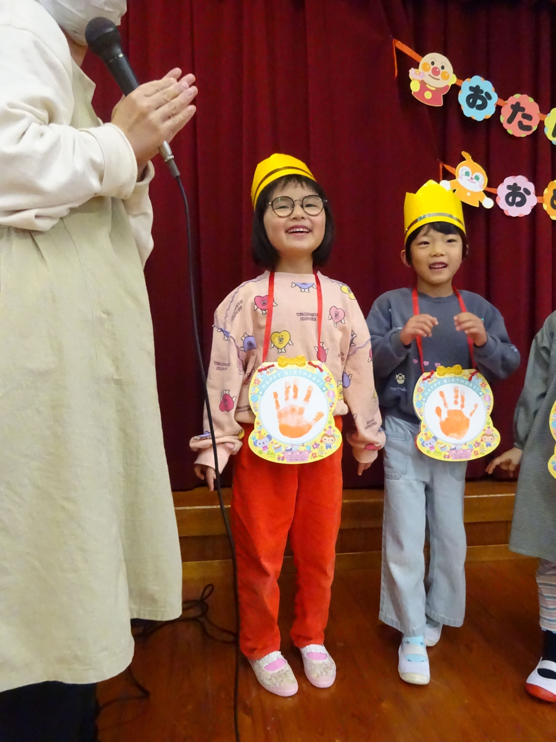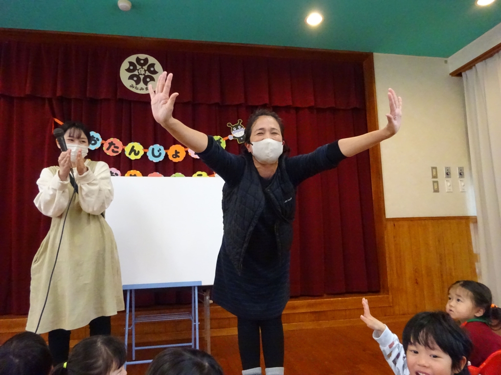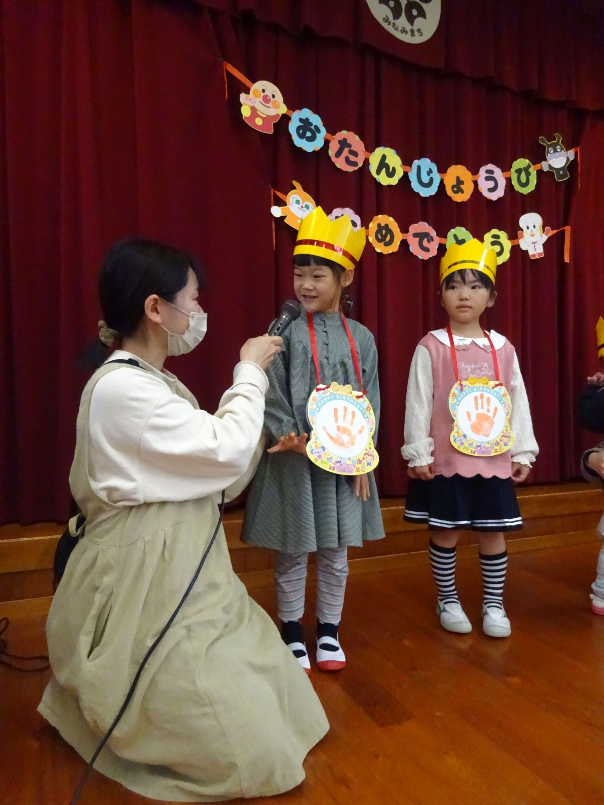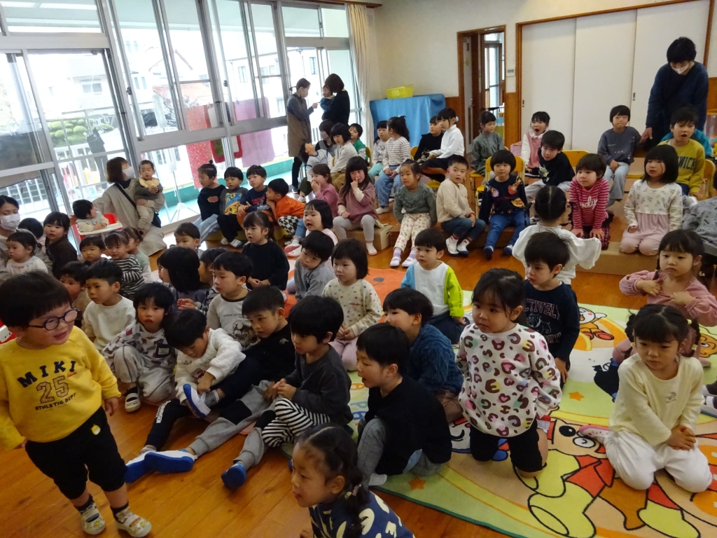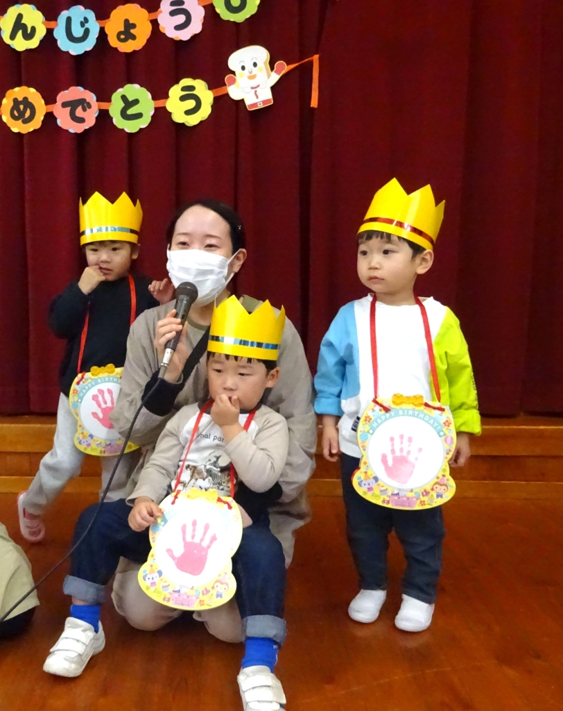 3月3日は、誕生会とひな祭り集会でした。まずは、3月の誕生会。らいおん組へのインタビューでは、『小学校に行って何をがんばりたいですか?』の質問に『さんすう☆』や『実験♪』等と答えてくれました。小さいお友達は、名前や好きな食べ物もかわいく答えてくれました。おたんじょうびおめでとう!
