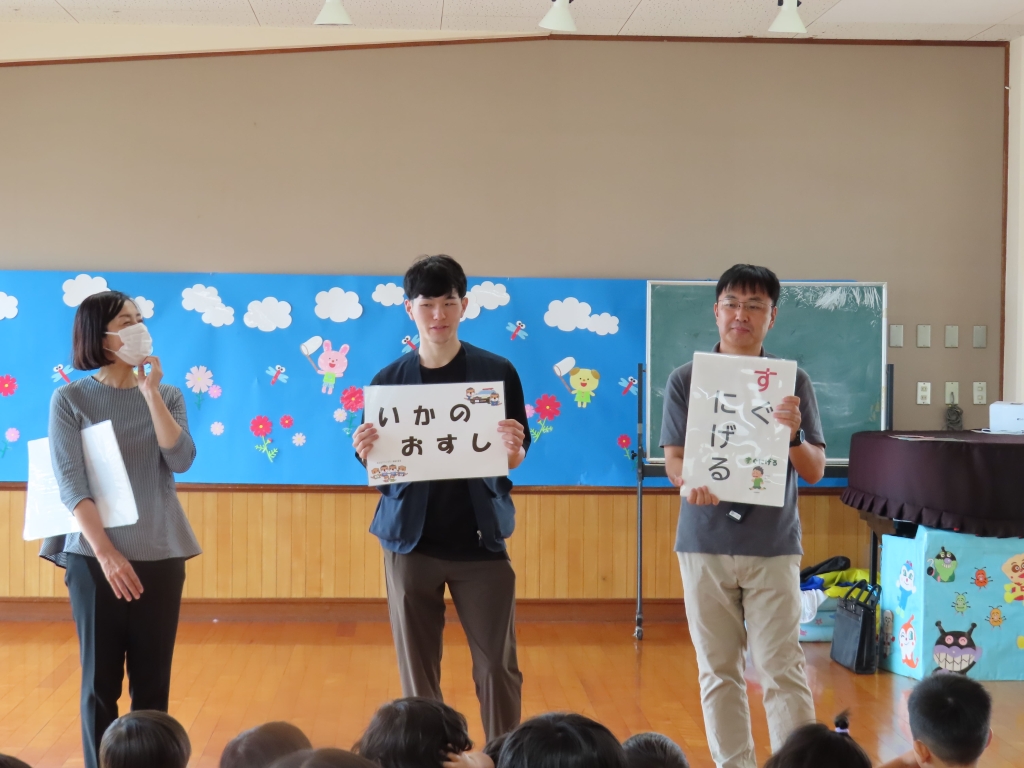 防犯対策として、子ども達に分かりやすいように『いかのおすし』(いかない・のらない・おおごえでさけぶ・すぐにげる・しらせる)のお話をしてくれたり、「優しそうな人でも、知らない人には絶対ついて行かないでね。」と教えてくれました。