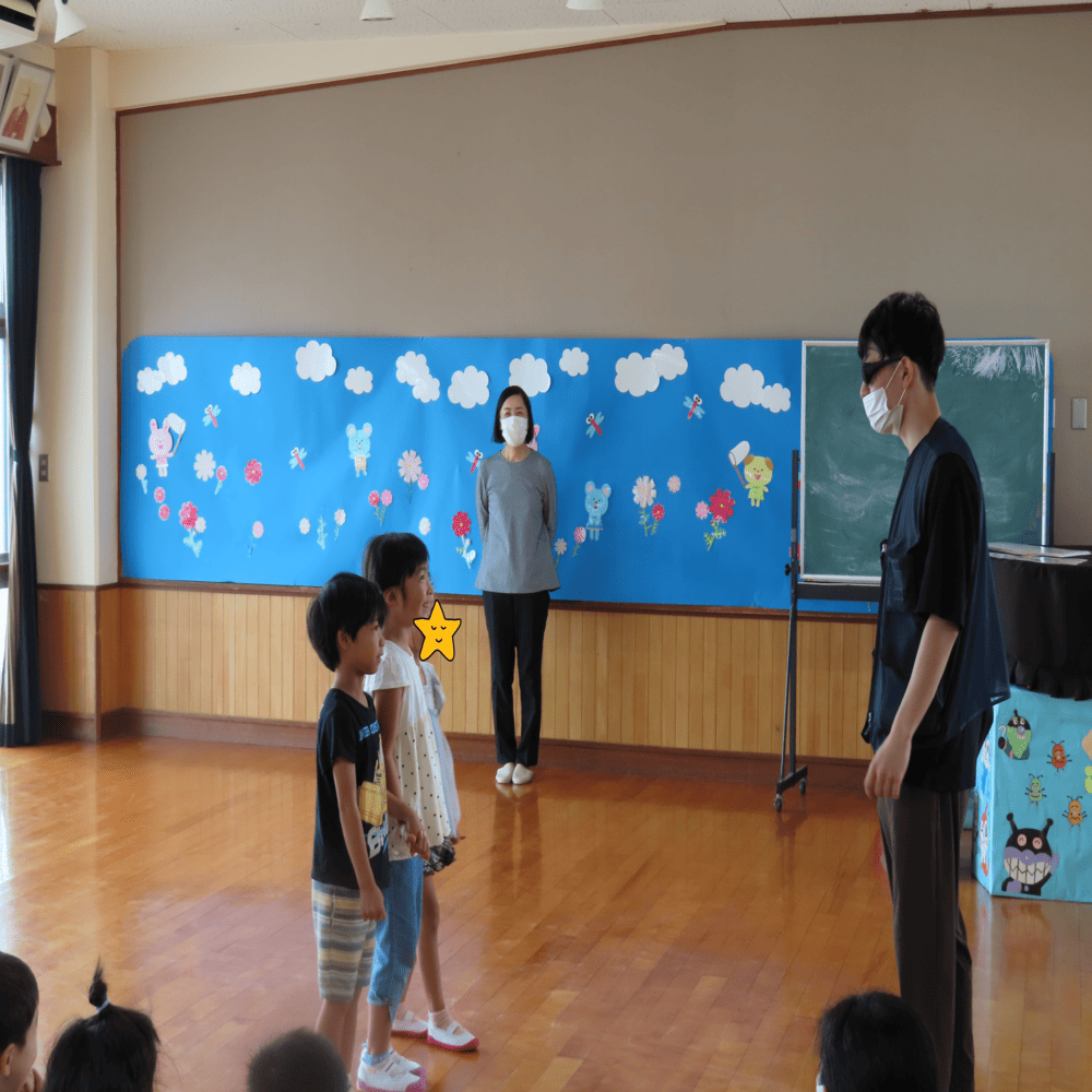 不審者役の人に「お菓子あるき行こう」「双葉園ってどこにある?おしえて」と言われ、ドキドキしながらも「しりません」とはっきり断っていました。