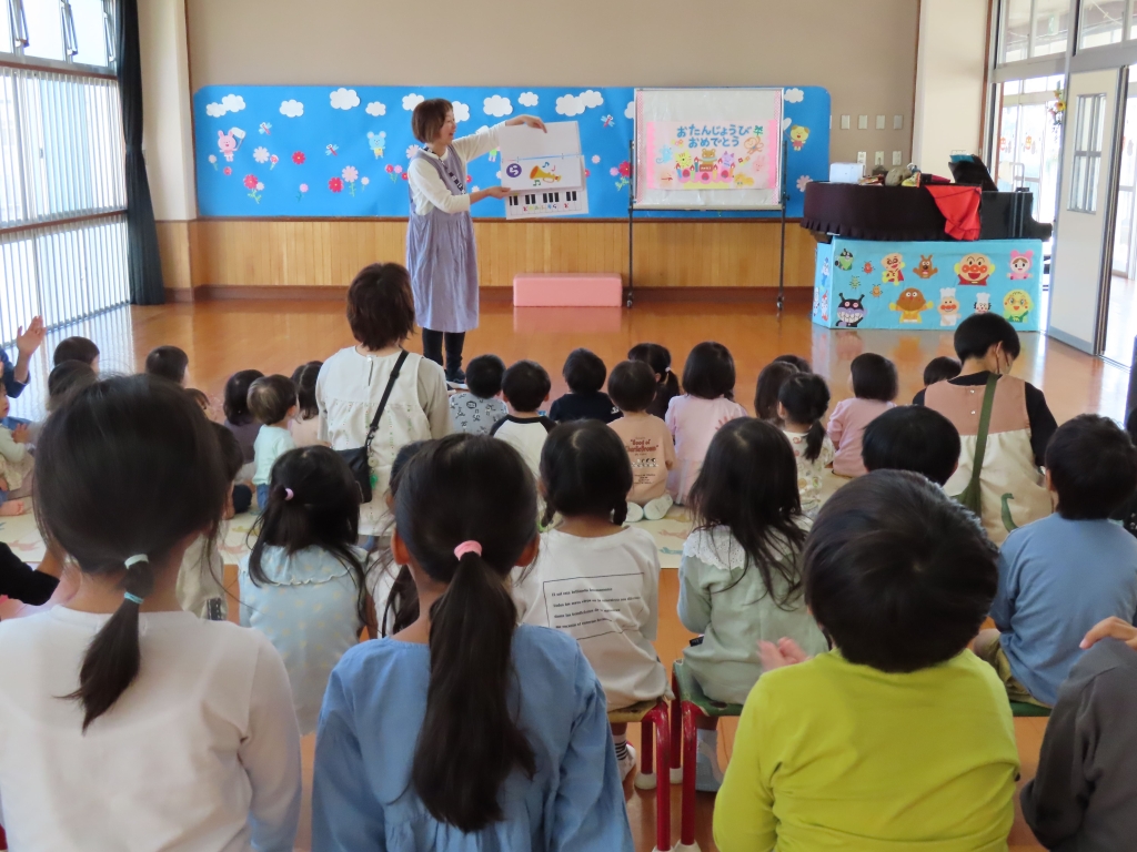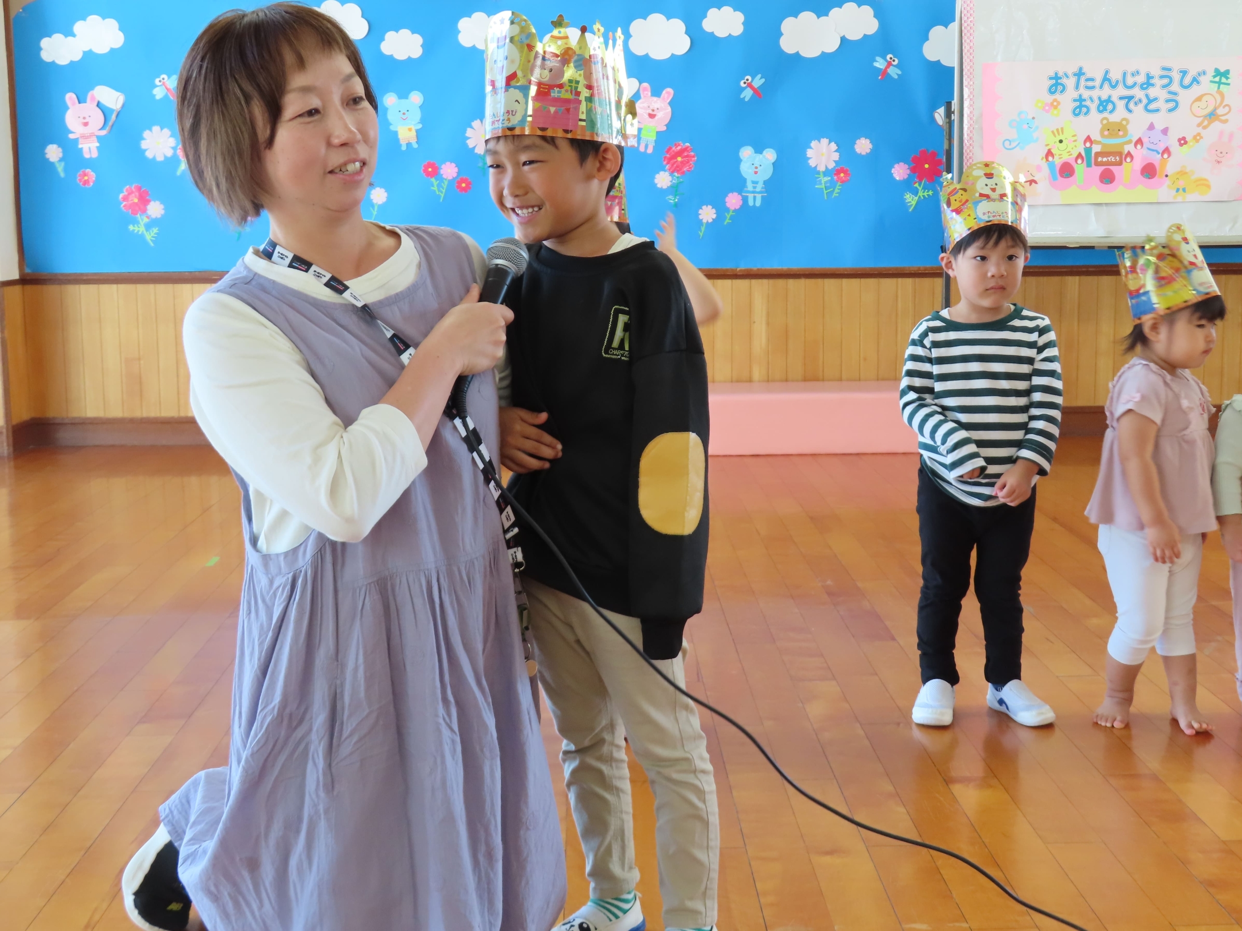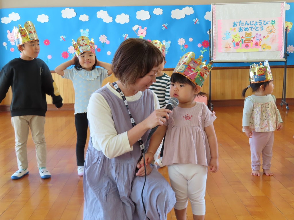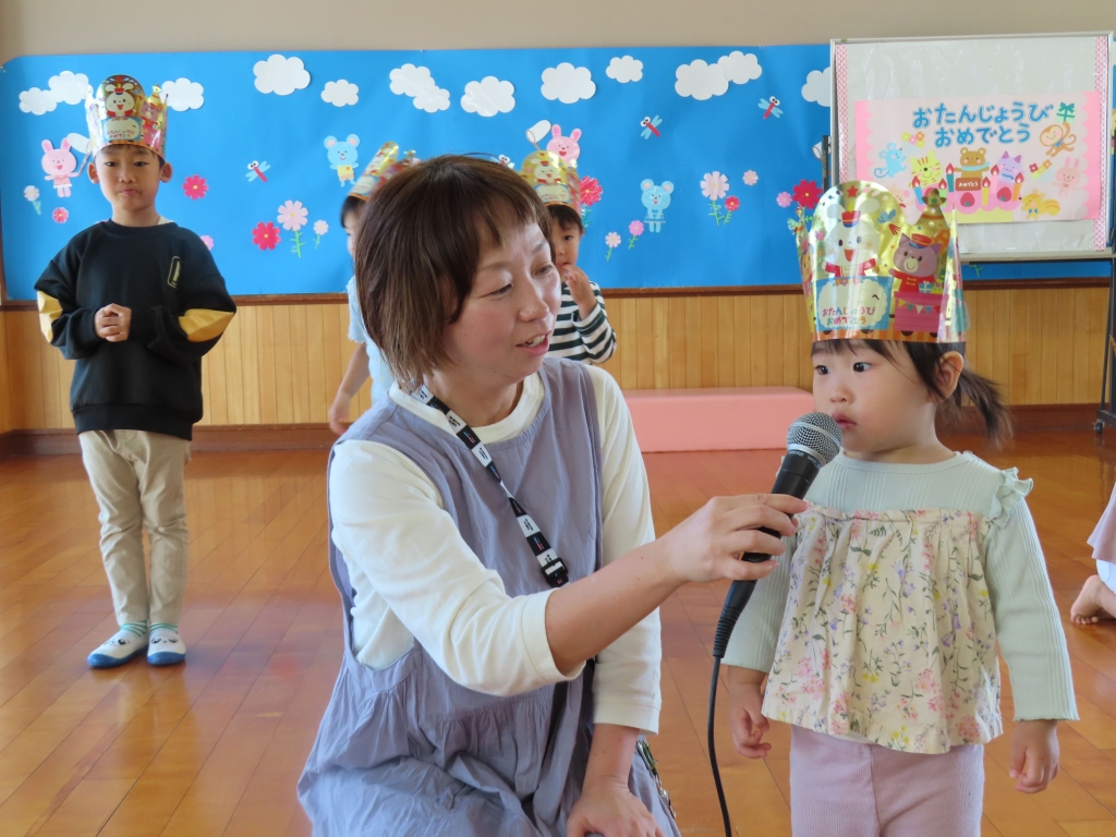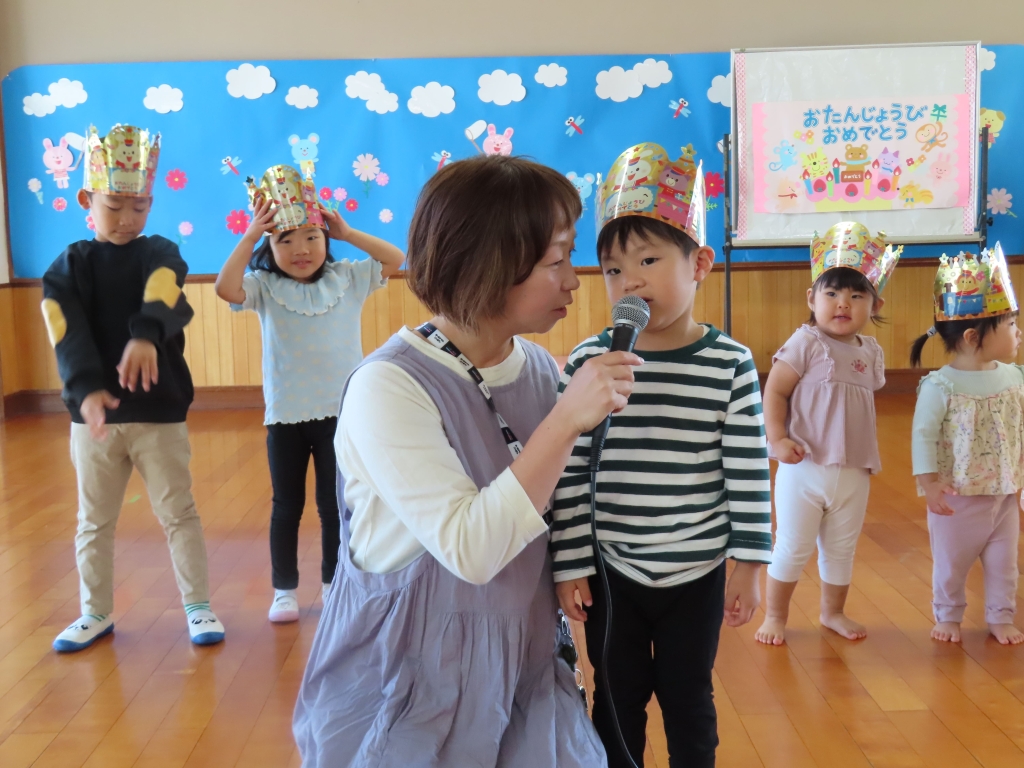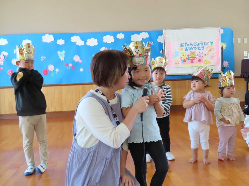 みんなで『ドレミの歌』と『どんぐり』を元気に歌ってお誕生会の始まりです!