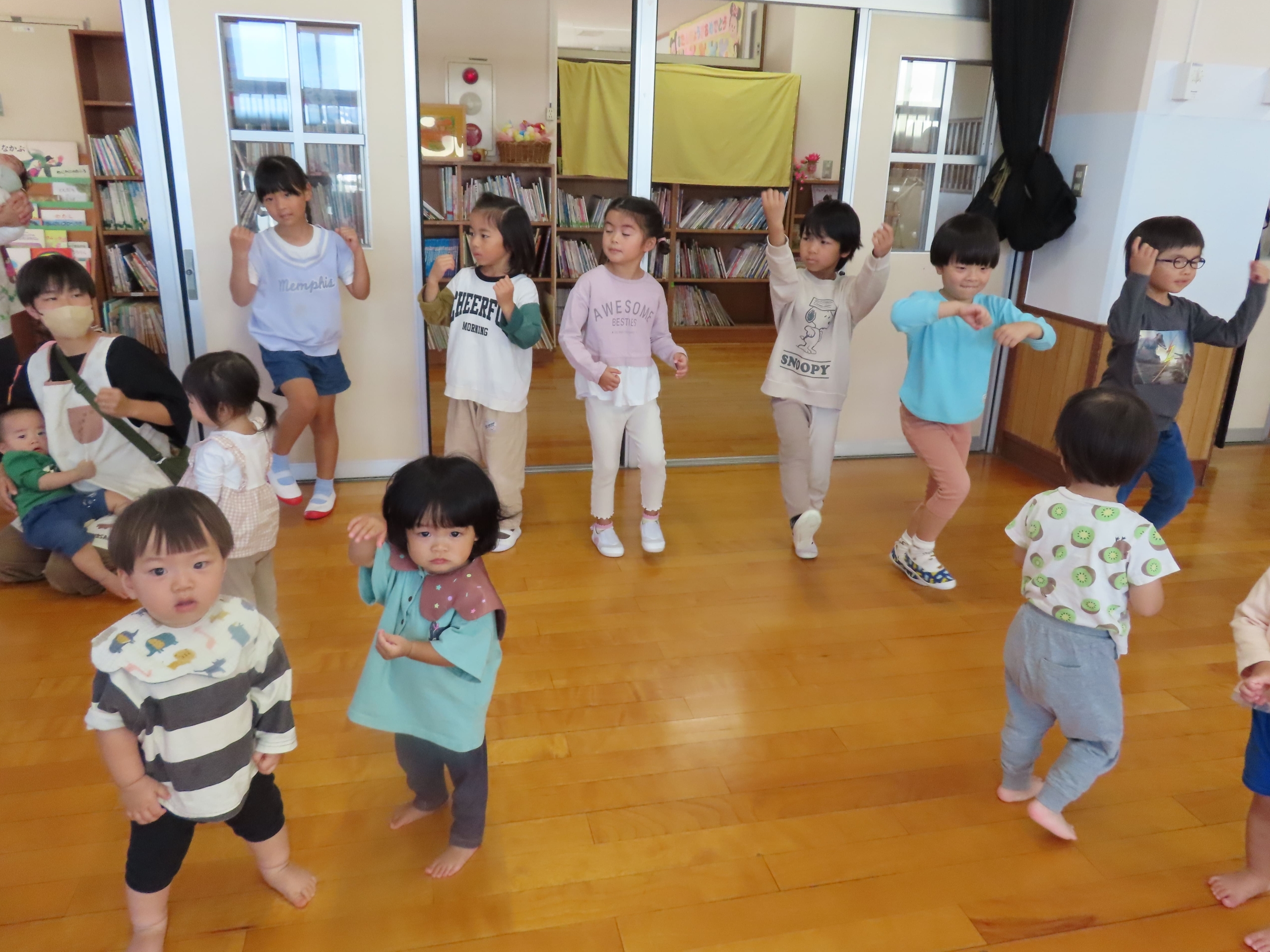 お兄ちゃんお姉ちゃんの踊りを真似して、乳児組のお友だちも可愛く踊っていましたよ♡