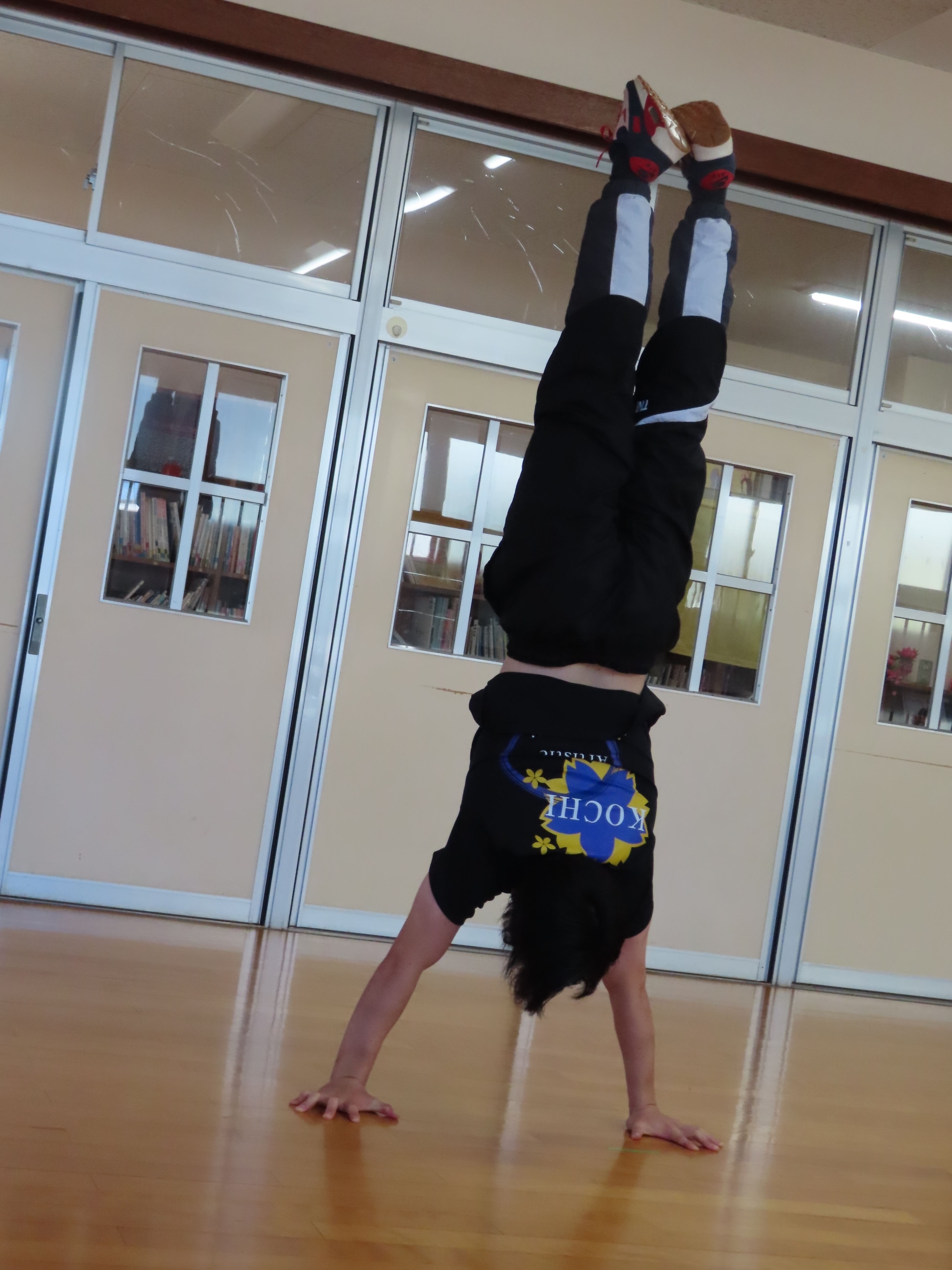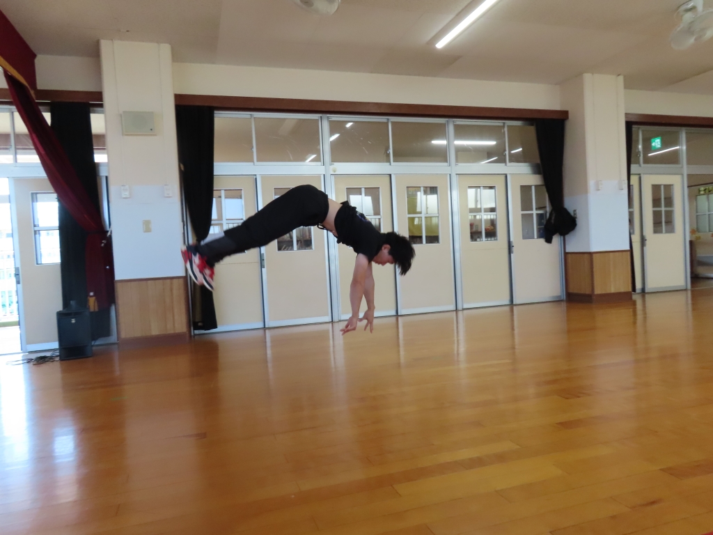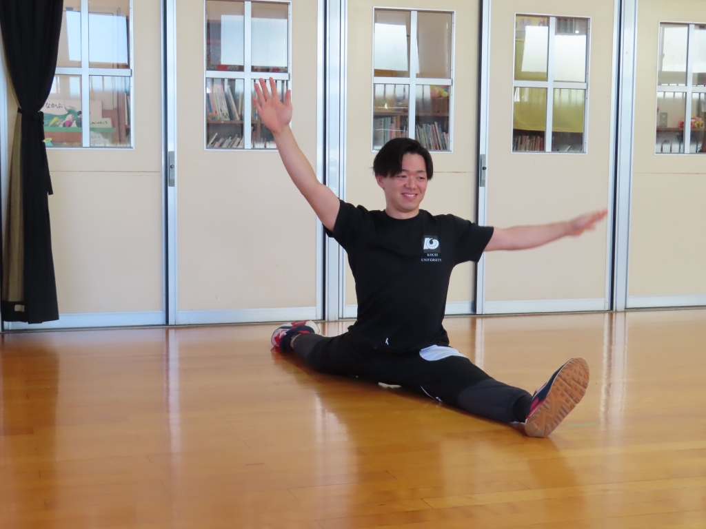 踊った後に、高知大学体操部のお兄さんが来てくれ、色々な技を披露してくれました。