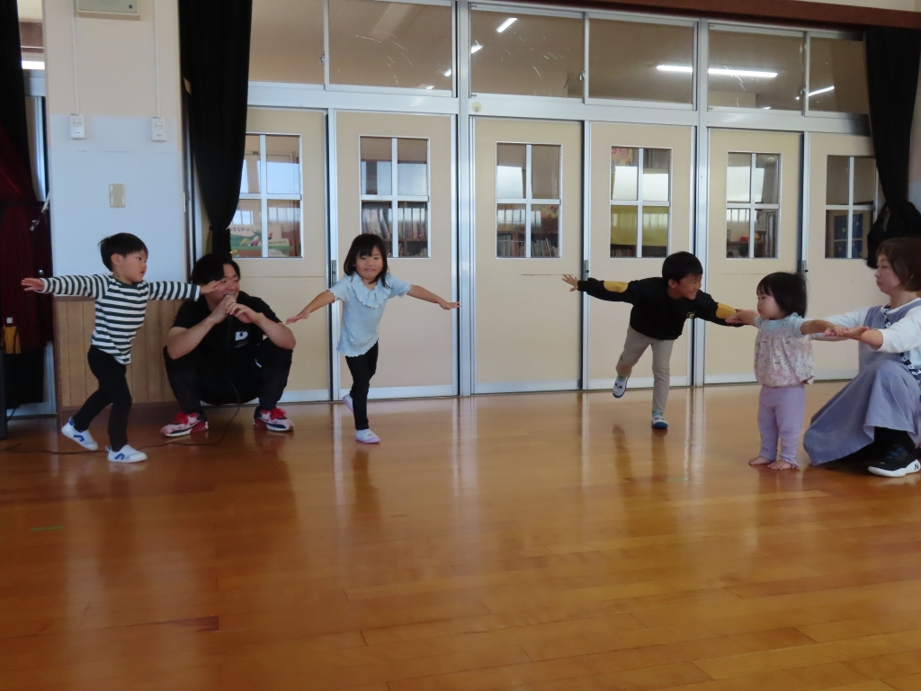 お誕生月の子ども達が、飛行機(バランス)を教えてもらい、上手に披露してくれました。