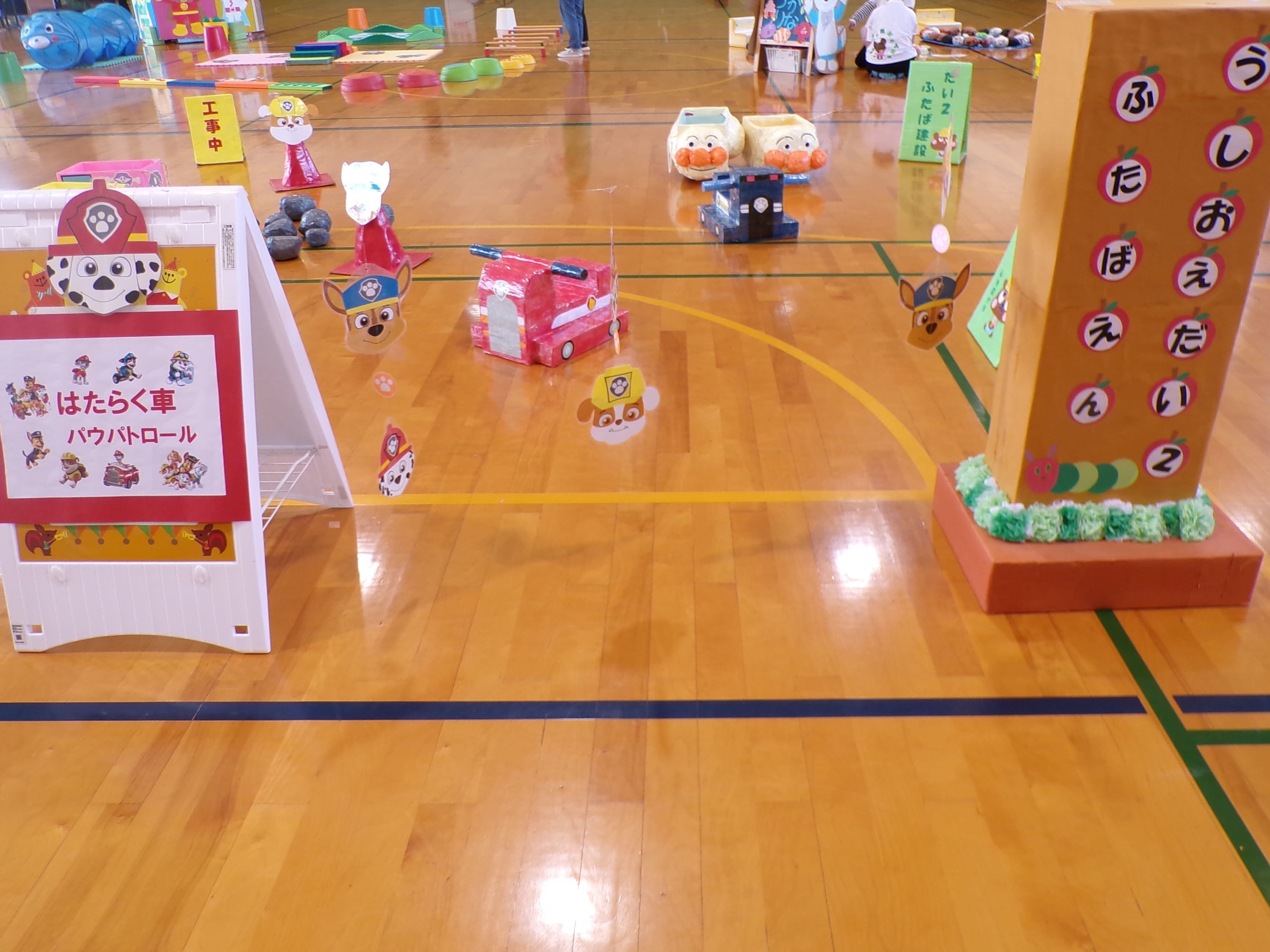 潮江第二双葉園の『はたらく車 パウパトロール』や、他の保育園の魚釣りゲーム、バルーンアート、フォトスタジオ、うんどう遊びコーナー、ストラックアウトなどたくさんの遊びがありました。