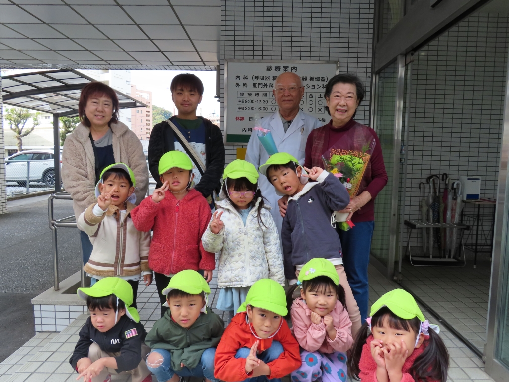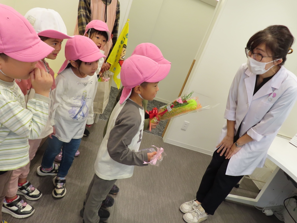 勤労感謝の花束を渡しに行ったよ☆ 2025.11.21 そら組さくら組が、島崎クリニック、絹川医院、梅ノ辻交番に花束とそら組さんが作ったカレンダーを渡しに行きました♪ 「いつもありがとう。お仕事、がんばってください‼」と大きな声で言えました😊 一緒に写真も撮らせていただいて、にっこにこでした📸 前の記事 最新の投稿 勤労感謝の花束を渡しに行ったよ☆ 11月のお誕生会☆彡 らい~なイベント ☆親子遠足☆ お芋ほりに行ってきました♪ カテゴリ 園からのお知らせ アーカイブ 2025年11月 2025年10月 2025年9月 2025年8月 2025年7月 2025年6月 2025年5月 2025年4月 2025年3月 2025年2月 2025年1月 2024年12月 2024年11月 2024年10月 2024年9月 2024年6月