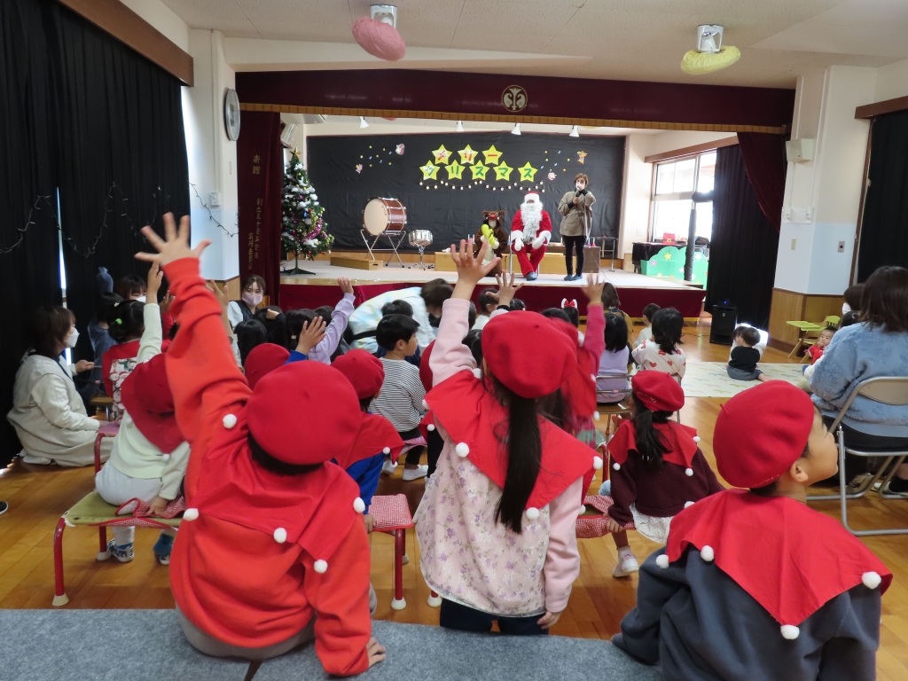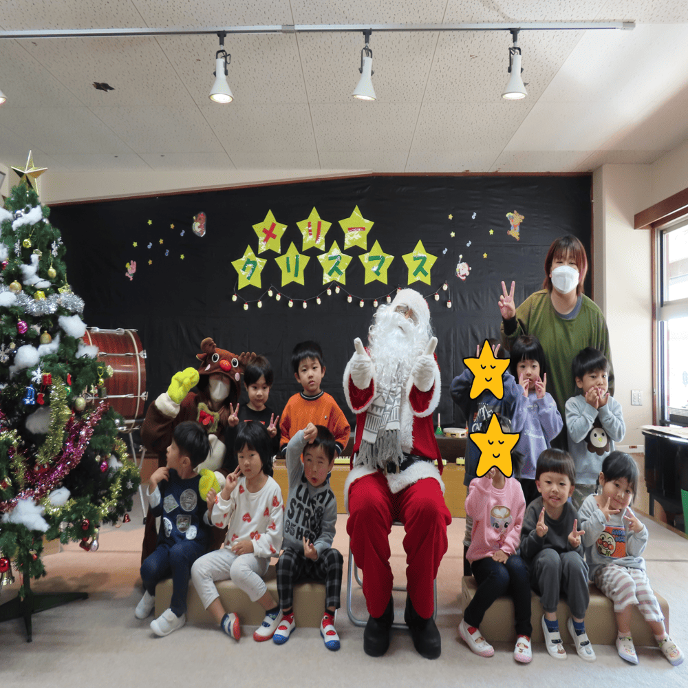 サンタさんに質問をしたり、一緒に写真を撮ったりして楽しいクリスマス会となりました。