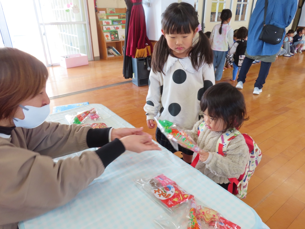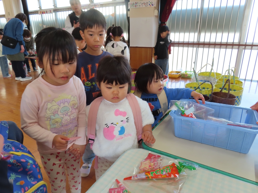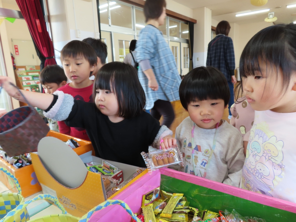 たくさんのおもちゃや、お菓子が買えて、大喜びのきんぎょ組とうさぎ組の子ども達でした。