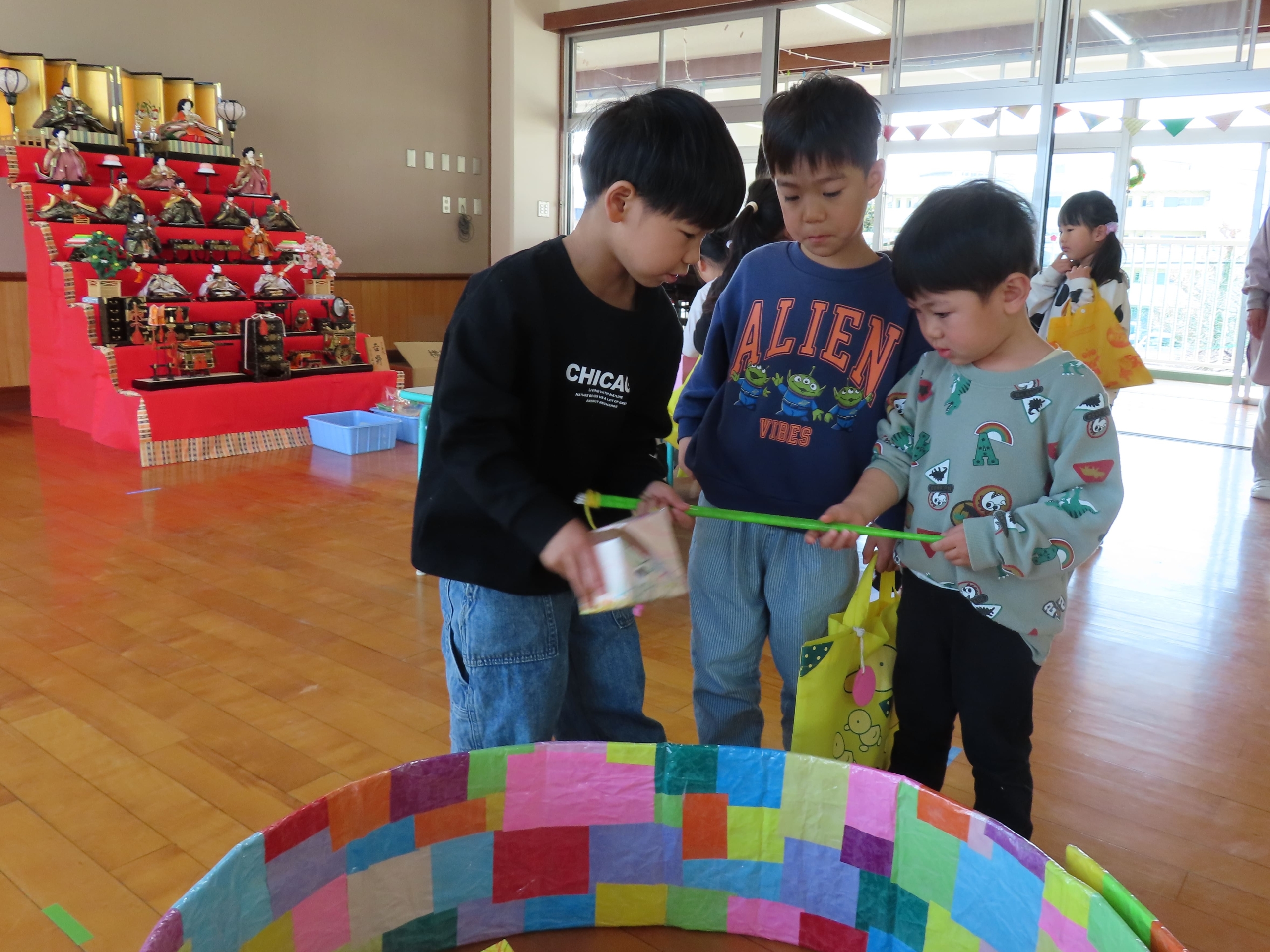 きんぎょ組とうさぎ組は、ホールに行ってお買い物を楽しみました。