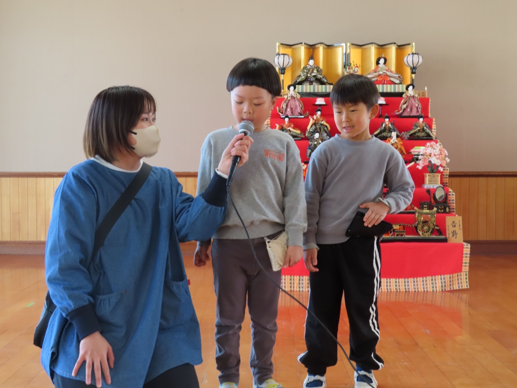 「すきな色は?」「すきな食べ物は?」「すきなフルーツは?」などのインタビューに「あお」「やきにく」「ぶどう」「メロン」などと可愛くもしっかりと答えていました。