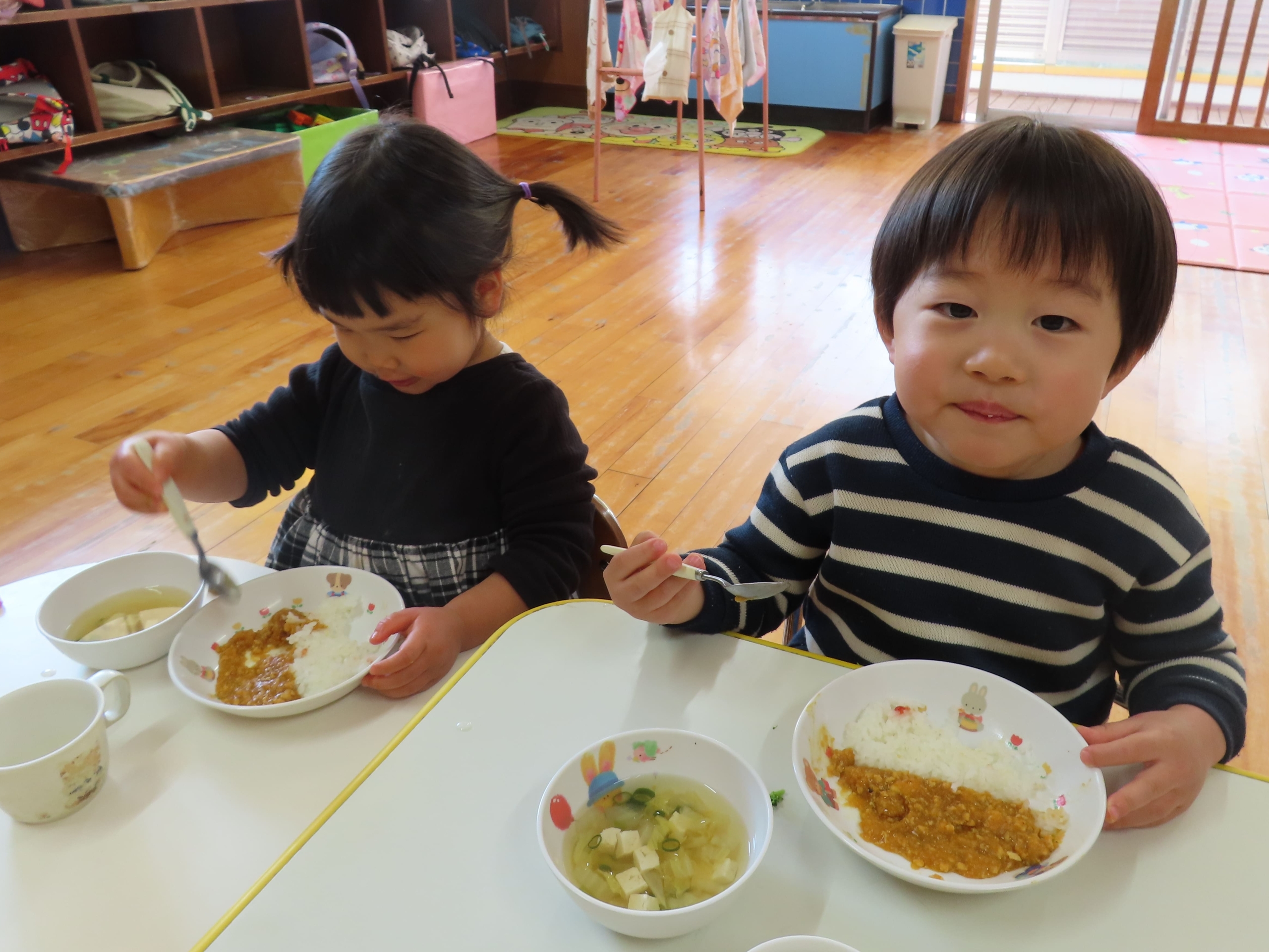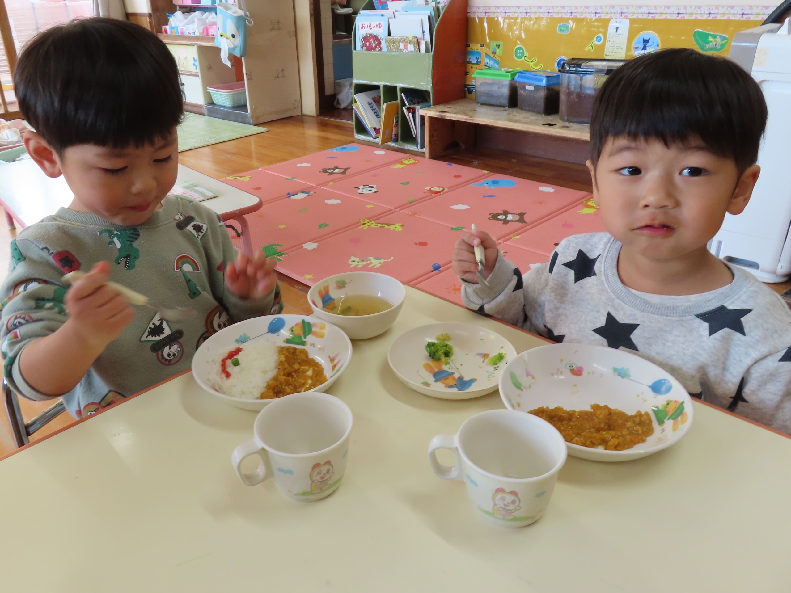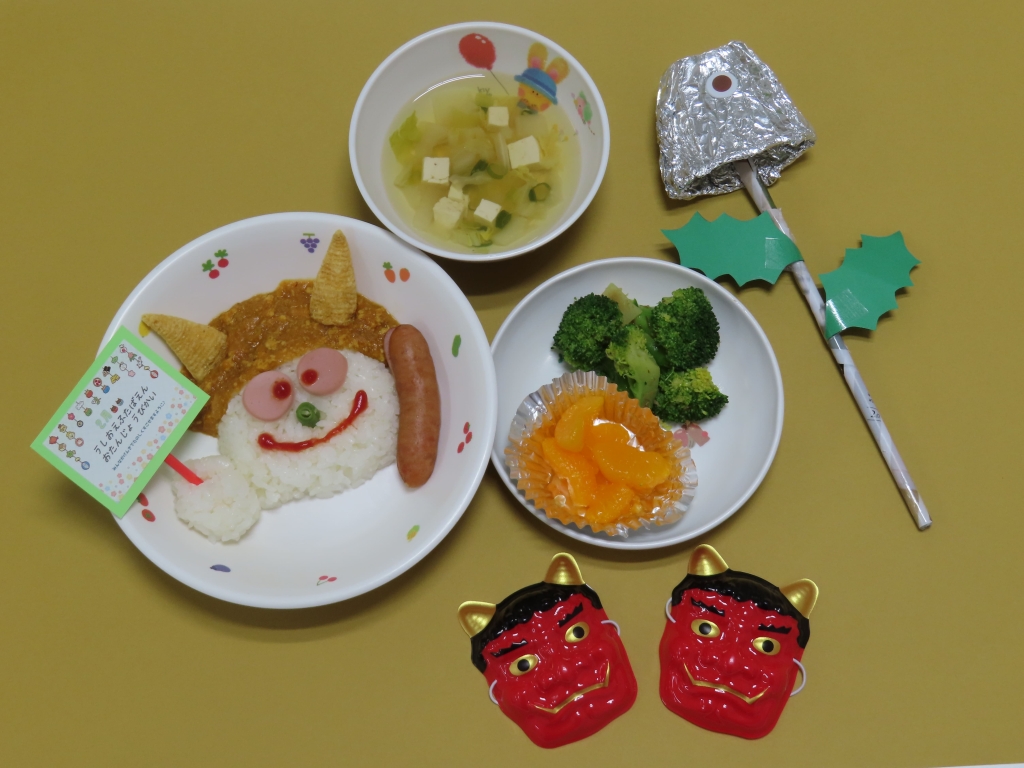 可愛い鬼さんカレーや、おやつのミニケーキに大喜びの子ども達でした。