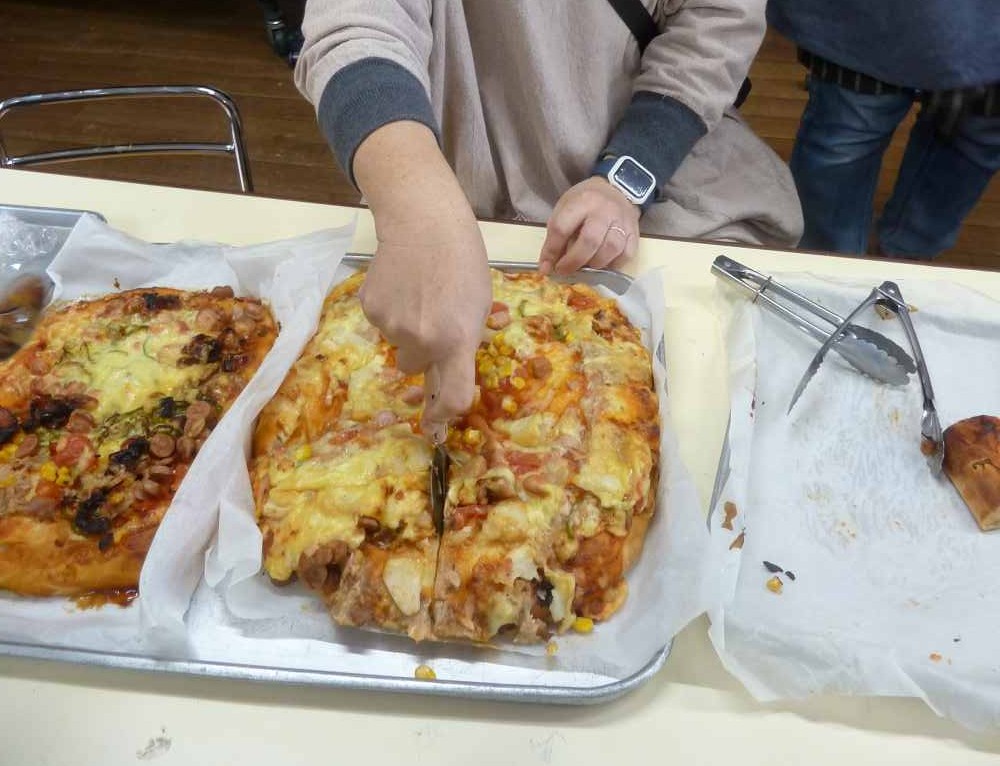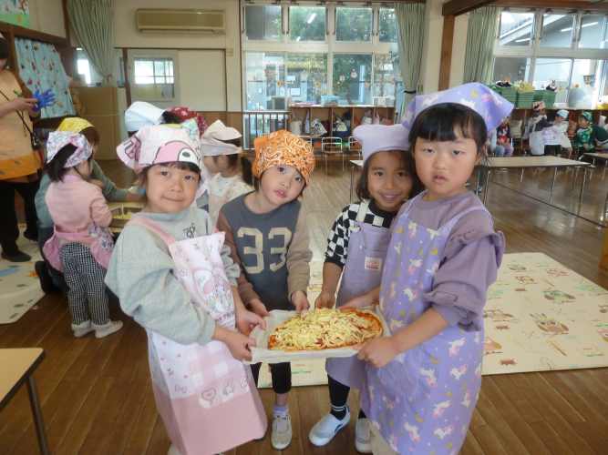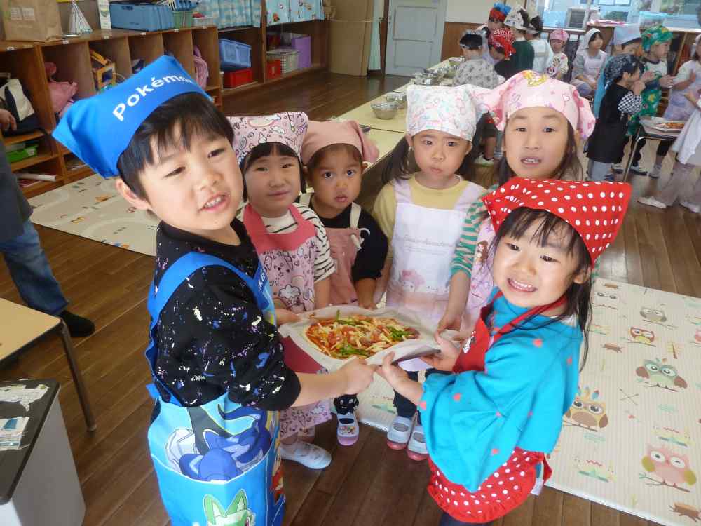 焼きあがったピザを全クラスおいしそうに食べました。おいしいものを食べると笑顔になりますよね。