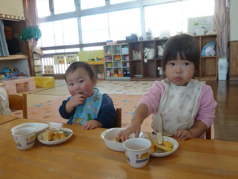 給食さんに持っていってやいてもらいましたよ。さあおいしく焼けたかな?