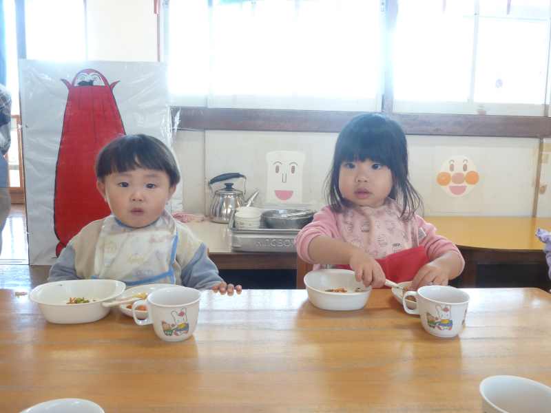 にじ組さんもばっちりですね! 1番はじめにピザの生地を作っていきます。先生が材料の説明をして子供たちに材料を見せていきました。どの子も興味津々に見てくれていました。